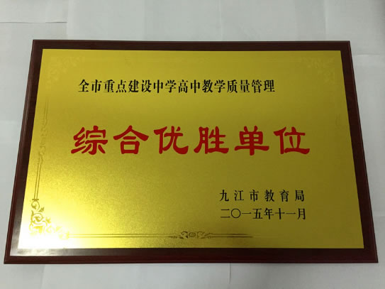 12月9日,从九江全市教育教学管理工作会上传来喜讯,九江县二中凭借优异的高考成绩,荣获2015年全市重点建设中学高中教学质量管理“综合优胜单位”荣誉称号。