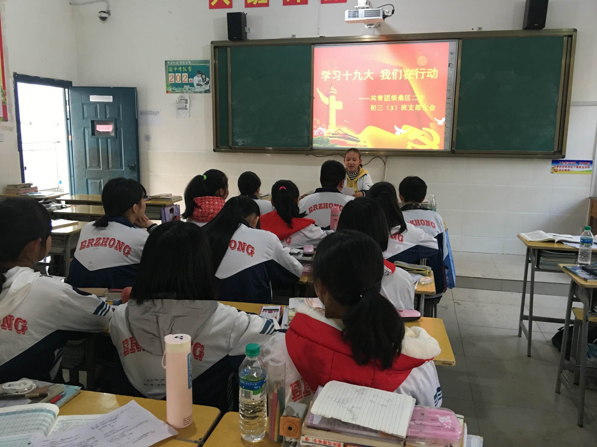 在此之前,2017年11月20日下午,“专题团课:学习宣传贯彻党的十九大精神”走进柴桑区二中。共青团柴桑区委书记陈石宝同志来柴桑区二中开展柴桑区共青团“学习宣传贯彻党的十九大精神”专题团课,我校校长吕敦科、副校长赵青、校团委老师及全体团支部书记和优秀团员代表共同参加学习。