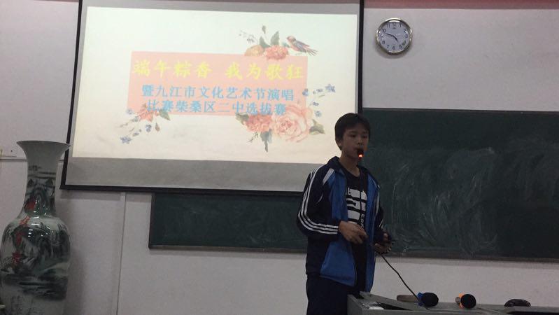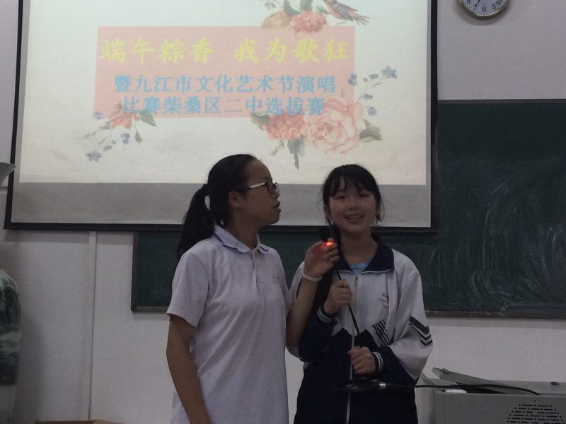 (通讯员 桂红红)值端午来临之际,6月13日下午,柴桑区二中校团委在多媒体教室举办了“端午粽香 我为歌狂”歌唱比赛初赛及决赛,经过37组选手分别以独唱、重唱及合唱形式的激烈角逐,当场由专业评审老师选出十组选手进入决赛。