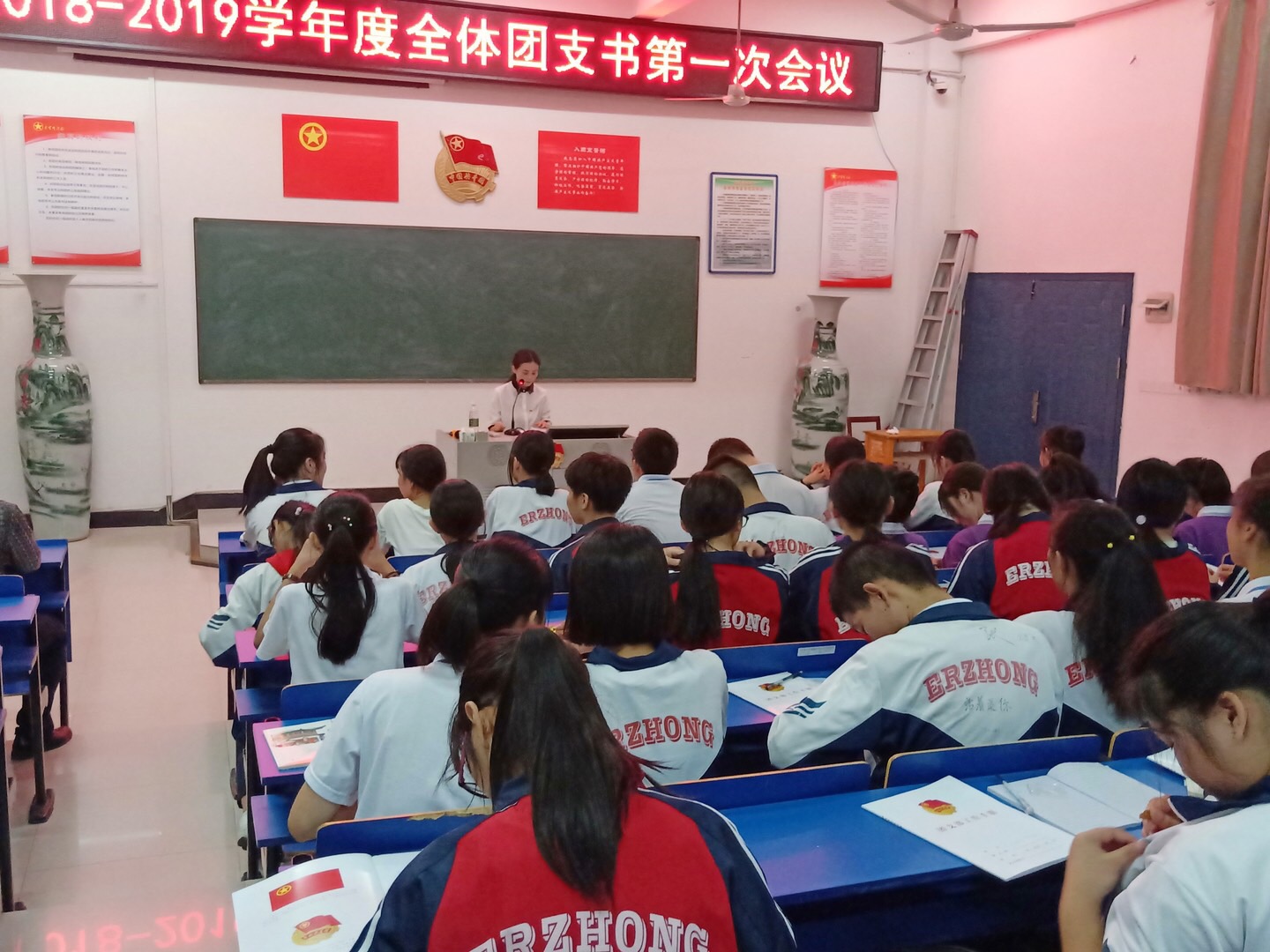 ——柴桑区二中校团委组织召开本学期第1次全校团支书会议