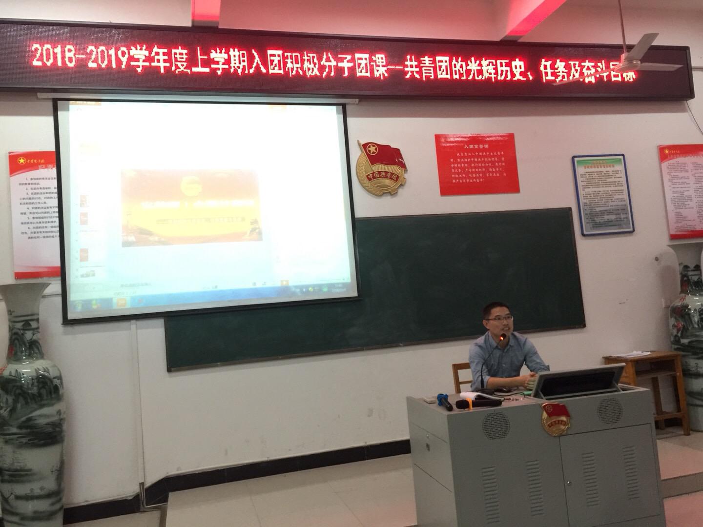 团课在高昂的团歌声中拉开帷幕,邱校长分别从三个方面谈共青团的光辉历史——团的发展阶段、团的2个历史事件、团的18次会议。强调了中国共产主义青年团是中国共产党领导的先进青年的群团组织,是广大青年在实践中学习中国特色社会主义和共产主义的学校,是中国共产党的助手和后备军。