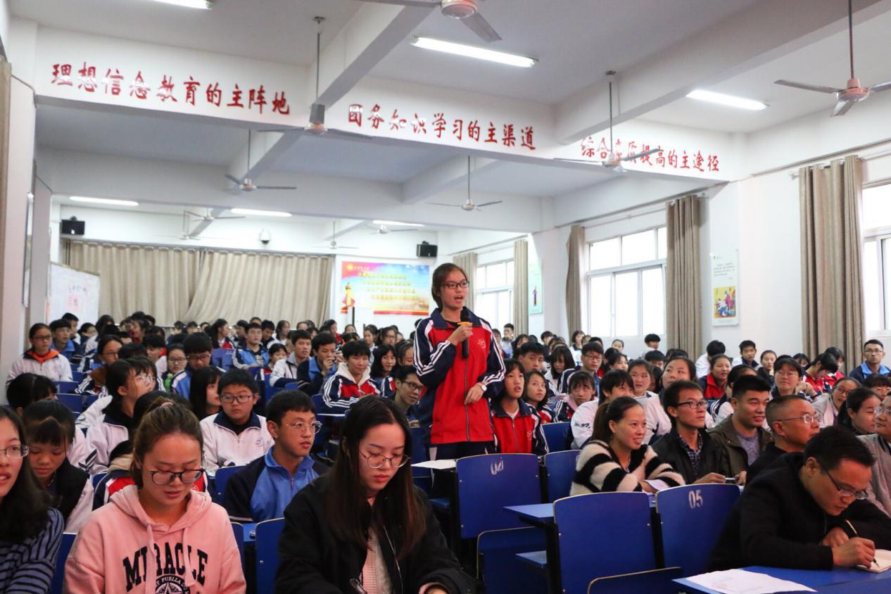 陈书记分别从从国家层面、社会层面及个人层面详细展开讲述如何认识社会主义核心价值观。在国家层面的价值目标,指出了,我们国家能够走到今天,有这样一个发展局面,我们的人民有这样还算满意的生活,是无数仁人志士抛头颅洒热血奋斗的结果。是极为来之不易的。作为当代的青少年我们有理由为我们的祖国感到骄傲。作为青少年学生对世世代代养育我们的土地不仅要有热爱,还有心存敬畏,更要懂得珍惜。在社会层面上的价值取向,自由不是没有规矩;平等不是平均;在个人层面上的价值准则,作为一名学生,学习就是你的职业,全力以赴地学习就是敬业。作为一名学生,考试不作弊,就是诚信,遵守校纪校规,就是诚信,与同学相处不是一言不合就拳脚相加,而知道体谅与沟通,就是友善。我们社会是每个公民组成的,学校也是每个学生组成的,我们每一个公民的行为影响社会的发展,我们每一个学生的行为影响学校的形象。