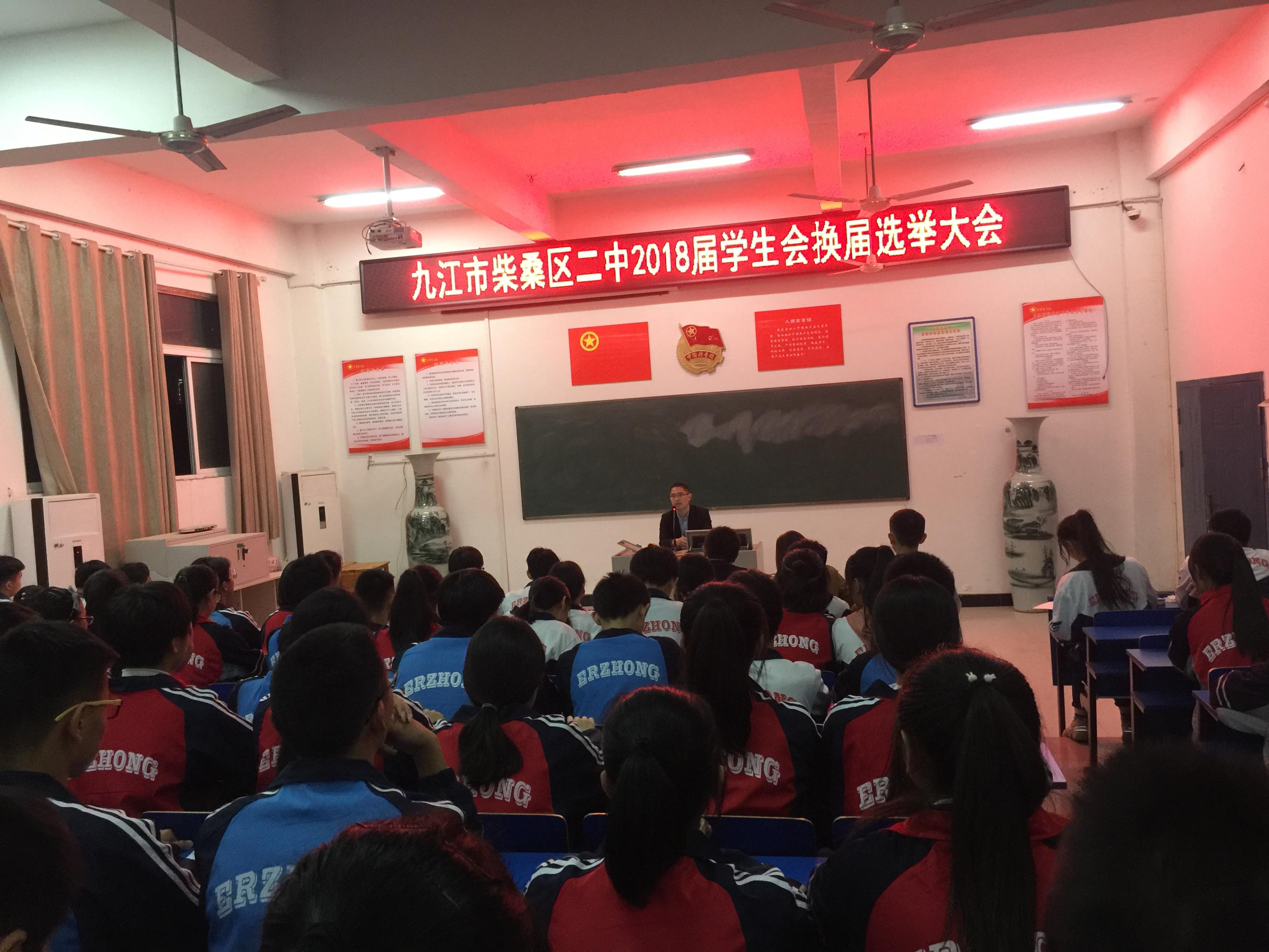 (通讯员 桂红红)11月1日晚,在校多媒体教室,校团委主办开展了一年一届学生会换届选举。此次大会秉承着“为学生会选举新的力量”的主旨选出新一届主席团。政教副校长邱纪烈,团委桂红红、文先保老师以及2017届学生会主席团成员及学生会六个部全体成员参加。学生会主席叶鹏飞主持会议。