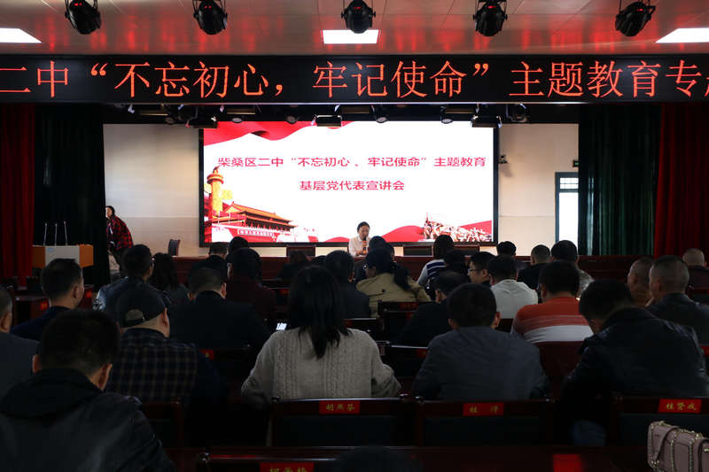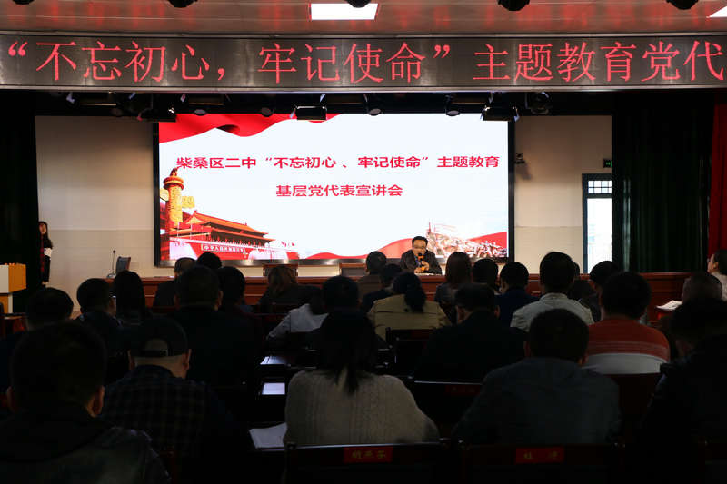 (通讯员 黄凌霞 拍摄 彭志军)2019年10月24日上午,在柴桑区第二中学进行了“不忘初心,牢记使命”主题教育宣讲会,会议由柴桑区二中基层党员代表黄慧同志主讲,柴桑区二中校党委书记朱巨军同志主持,全校党员参加会议。