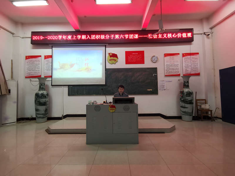 (通讯员 李冰钰)2019年11月11日晚,柴桑区二中2019—2020学年度上学期入团积极分子团课如期举行。校团委邀请了初中语文教研组彭志军老师主讲,本次团课的主题是“社会主义核心价值观”,彭老师的精心准备为入团积极分子带来了一场精彩纷呈的团课。