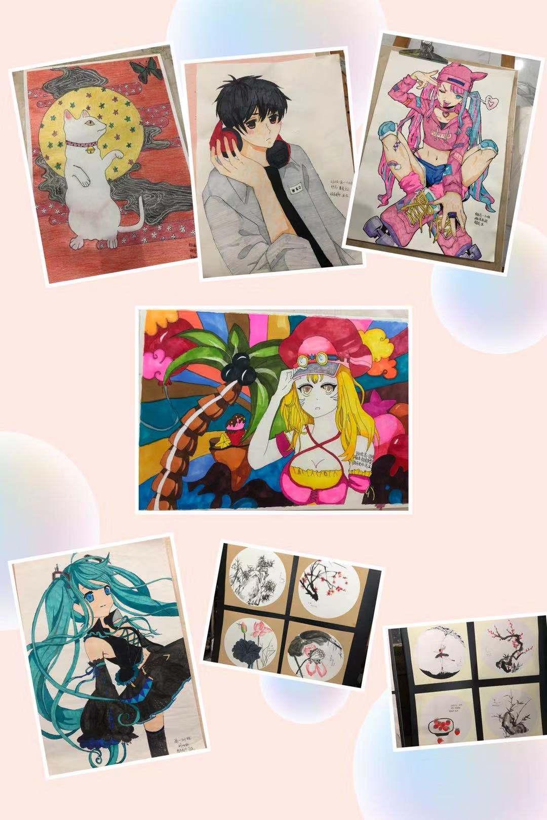 以上是艺术节书画展览掠影,展览都是美术课上的作品,并不是专业班学生画,而是高亚、易南山、张贤静、余小明等老师指导下的非专业的同学的作品。经过层层公平公正的筛选,部分获奖作品在元旦期间在校园内巡回展出一周。本次活动的举办不仅丰富了同学们的课余时间,而且也营造了良好的校园文化氛围,增强了同学们的艺术鉴赏力,弘扬了我校深厚的文化底蕴。
