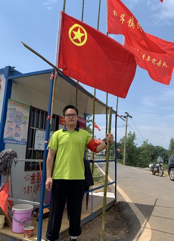 汤云翔同学被安排前往城子镇建设堤1号哨所巡堤,跟随哨所其他值岗人员一起排查坝台排水沟,排查险情。在漫漫堤坝上不断往返,行程单调而枯燥,他却毫不懈怠,把青春的汗水洒在防汛一线,构筑防灾救援的“青春堤坝”。