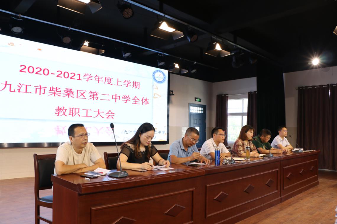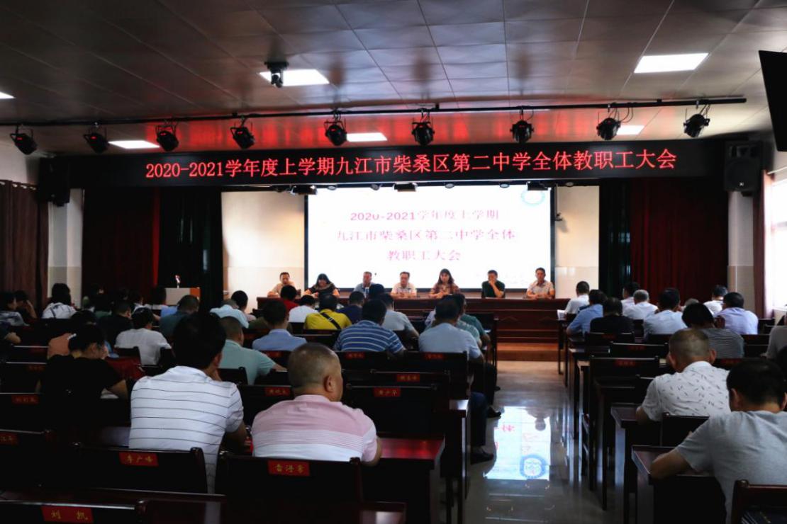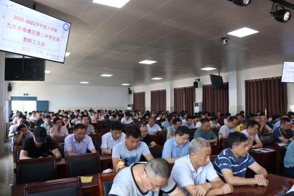 (通讯员 彭志军)秋高气爽新学年,豪情满怀展风采。8月26日上午9点,柴桑区二中在新会议中心召开了“2020-2021学年度上学期全体教职工大会”。校长吕敦科、校党总支书记朱巨军等300余名教职工参加,会议由邱纪烈副校长主持。