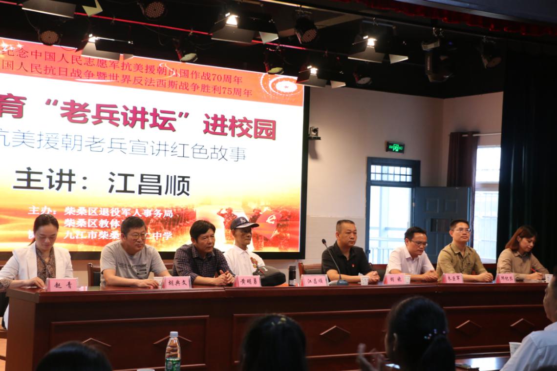 此次活动由柴桑区退役军人事务所、柴桑区教体局主办,柴桑区二中协办,活动由抗美援朝老兵江昌顺同志主讲,柴桑区退役军人事务所、区教体局、区二中主要负责同志参加,校团委书记桂红红主持会议。高一年级300余名学生代表聆听了主题讲座。
