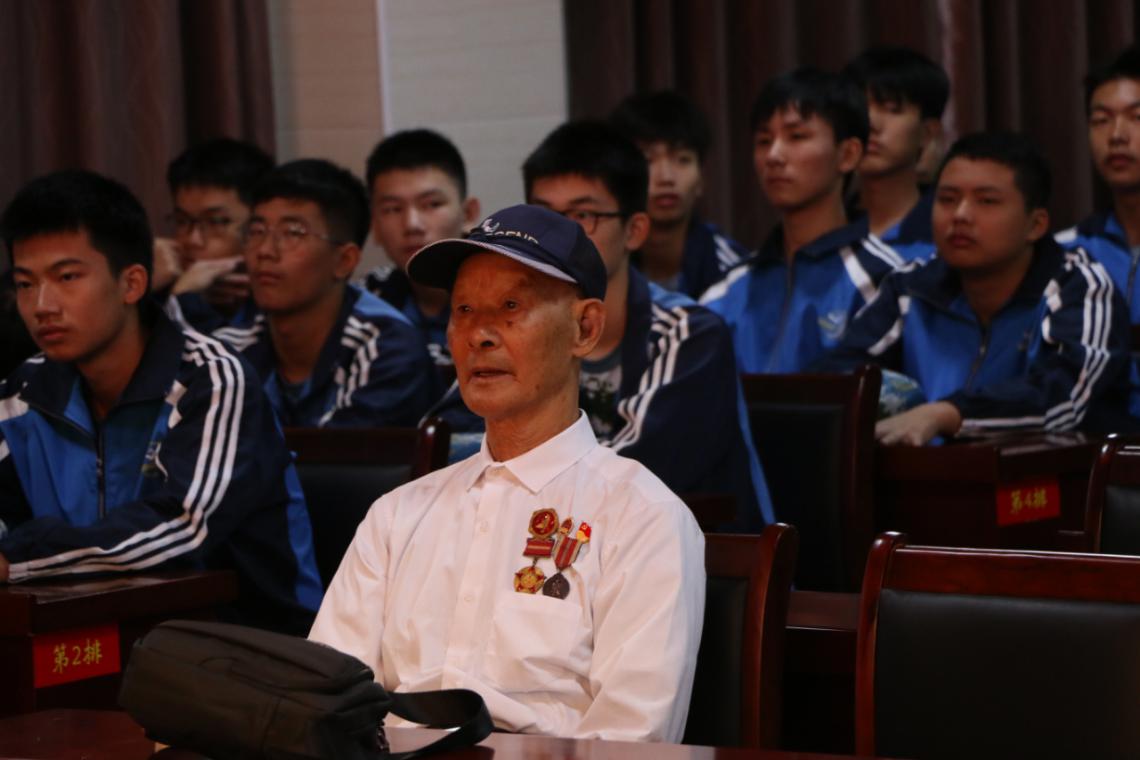 老兵江昌顺虽已88岁高龄,仍然精神矍铄,目光炯炯有神。他从大时代背景出发,从抗美援朝经过、个人抗美援朝经历、对抗美援朝的认识等方面向同学们深情讲述那段民族存亡、战火纷飞的岁月。说到战友牺牲时,泪含目光,几度哽咽。