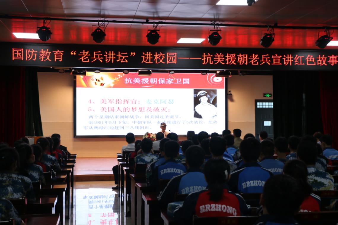 此次讲座旨在加强中学生国防教育。讲座中,同学们的身板更加笔挺,坚定的目光不仅是对革命英雄的礼赞,更是对奋勇拼搏创造美好生活的向往。通过“老兵讲坛”,新一代的青少年对“祖国”也有了更深的理解。