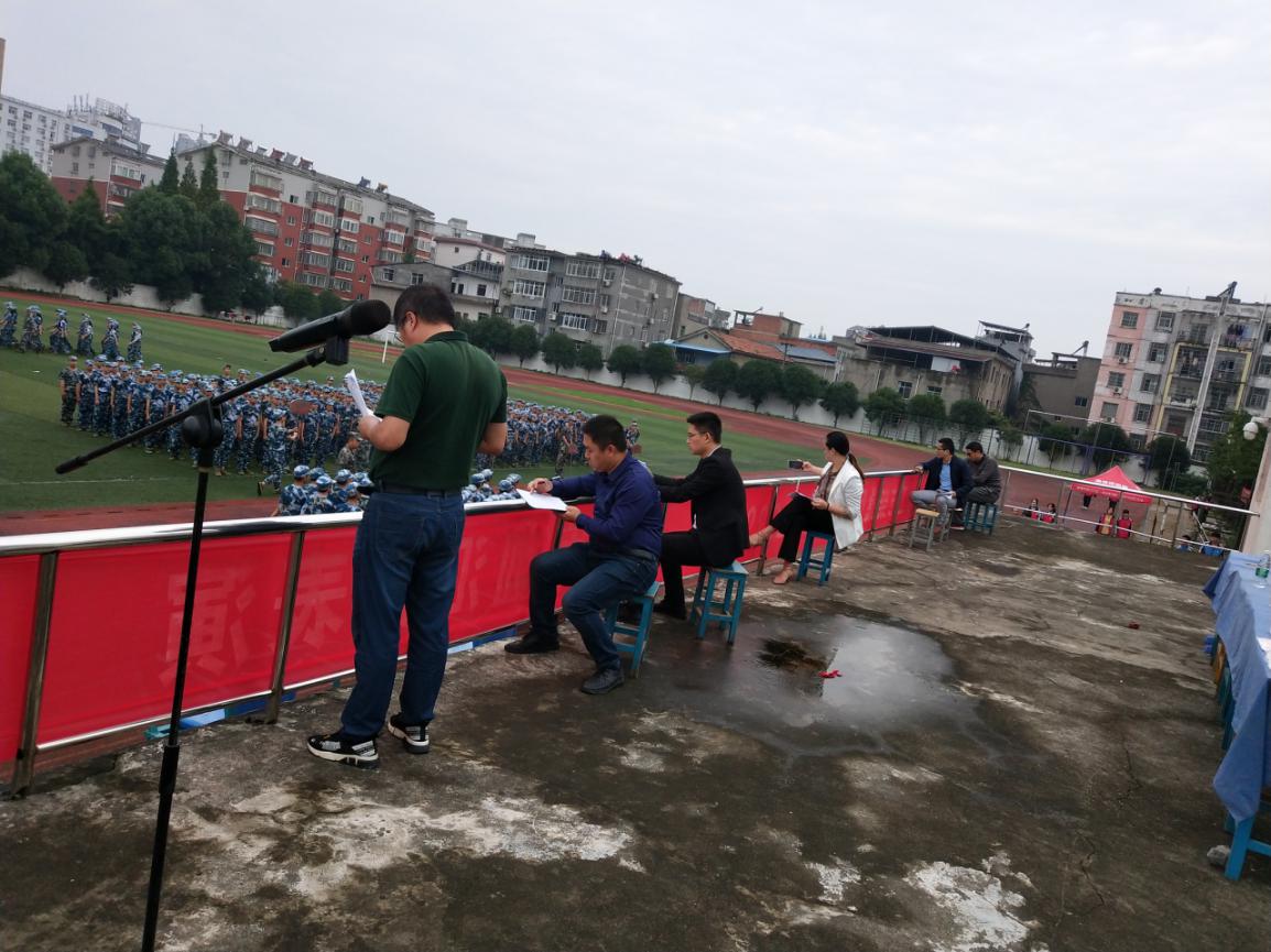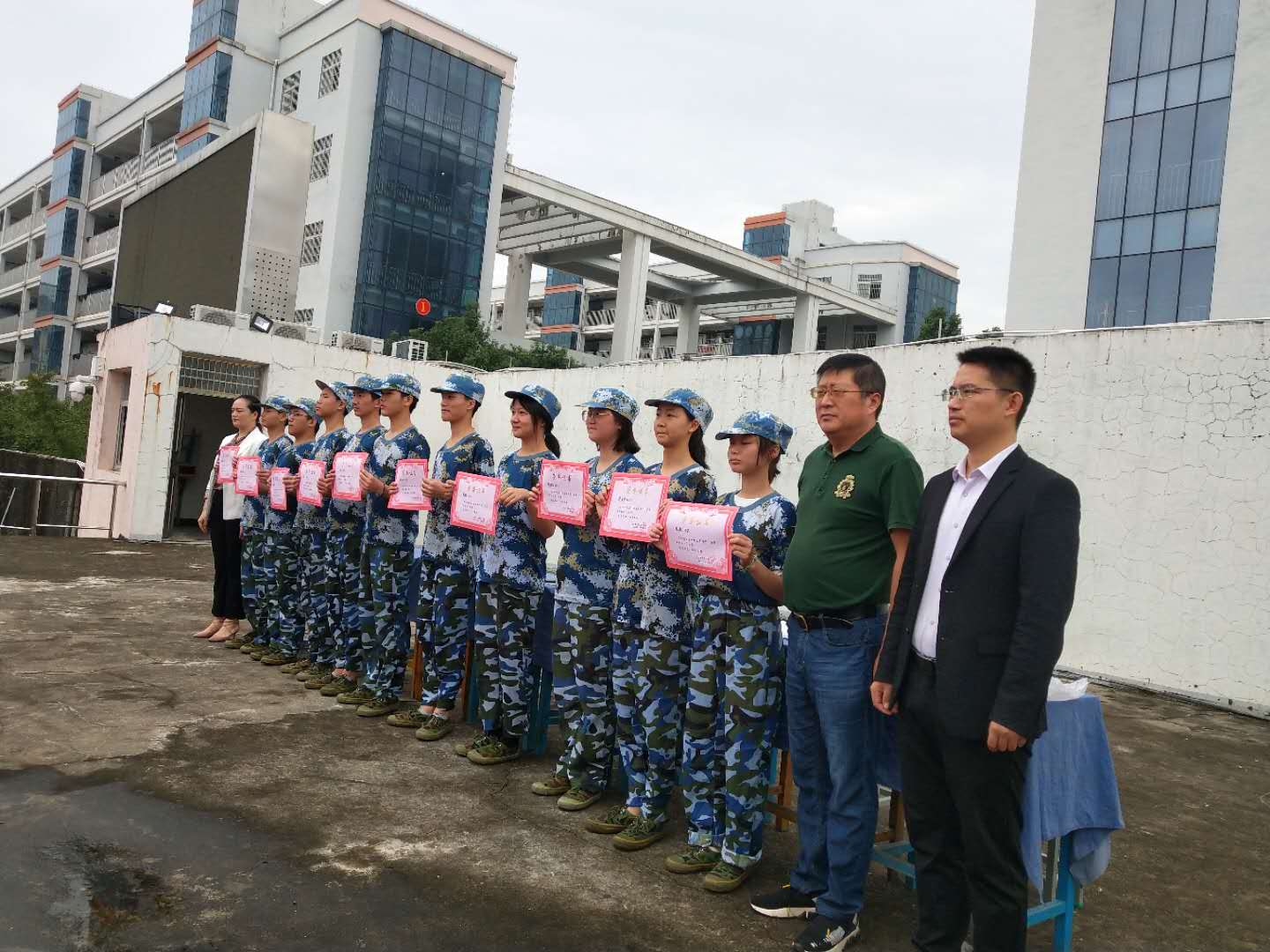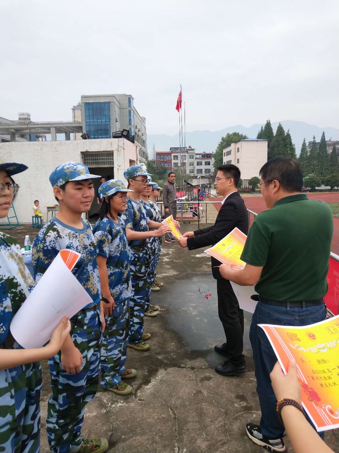 四、政教处副主任陈尚友总宣读表彰名单,对军训标兵进行了表彰,副校长胡典文、副校长赵青、副校长邱纪烈、分别给获奖同学和班排颁奖;