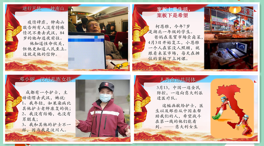 彭老师从全国抗击新冠肺炎疫情表彰大会说起,由“共和国勋章”和“人民英雄荣誉称号”谈到新时期的英雄观。围绕“颁授仪式金句”、“重温英雄颁授时刻”、“伟大出自平凡”、“平凡造就伟大”四方面展开剖析。通过课堂问答、视频感悟、图片故事等方式阐述平凡生活中英雄的诞生。