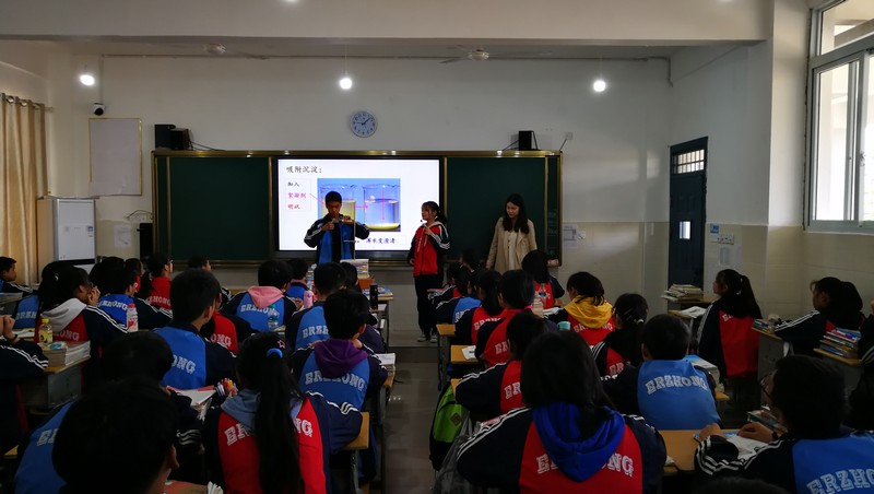 经过精心准备和组织,当天上午8:55,在初三(12)班,由桂江韵老师开展的公开课如期进行,校党总支副书记熊婷、简正流老师及全体初三化学老师全程参与公开课的观摩。