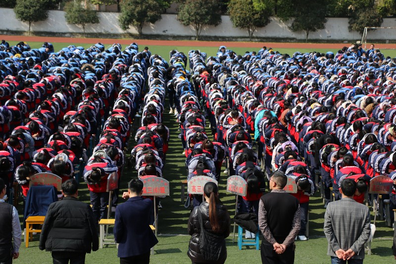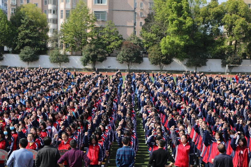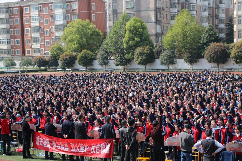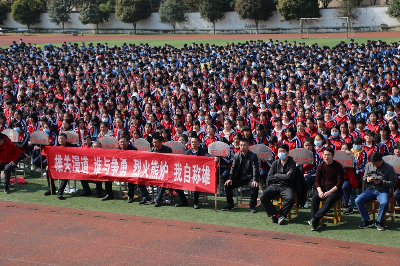 最后,校党总支副书记熊婷作总结发言。熊书记送给全体师生三句话:要有高远实际的目标、要有分秒必争的意识、要有坚持到底的毅力。并以对联“有志者、事竟成,破釜沉舟,百二秦关终属楚;苦心人、天不负,卧薪尝胆,三千越甲可吞吴”勉励同学们拼搏每一天,快乐每一天,进步每一天,夺取中考、高考的胜利,为母校争光!为自己的人生添彩!