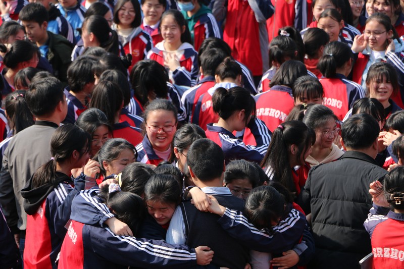 刘高磊老师的演讲,真诚大气,极具感染力。在互动环节,学生向辛勤付出的老师深深鞠躬,老师为学生祝福加油;师生双手举过头顶鼓掌加油。不少同学眼含热泪,深情感恩老师的付出和培育,用鞠躬和拥抱方式,一幕幕温馨而感人的场景令人终生难忘,表达了对老师的感恩,对母校的热爱,现场气氛达到高潮。