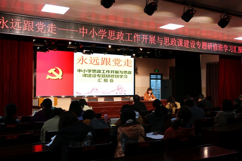 (通讯员 董玲)根据区教体局的工作部署,2021年4月26日下午,柴桑区第二中学召开永远跟党走——思政工作开展与思政课建设研修班学习汇报会。校党总支副书记熊婷就赴南京参加为期一周的中小学思政工作开展与思政课程建设专题研修班的学习成果在全校范围内进行交流汇报。