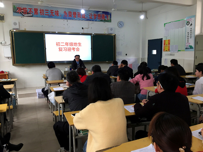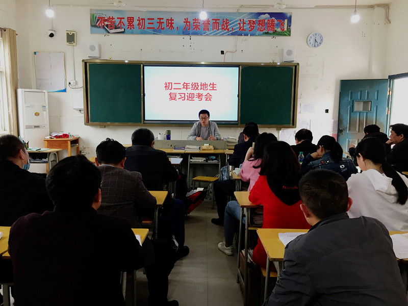 (通讯员 蔡茂景 彭志军)在学考改革的新形势下,为科学有效地推进地生学科复习工作,2021年4月28日下午4点,初二年级所有班主任和全体地理生物老师齐聚一堂,共商良策,召开初二地生冲刺迎考会,会议由初二年级主任罗来欢主持,校长朱巨军、校长助理杨炳华亲临指导。