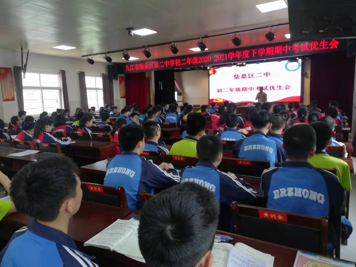 会上,初二年级主任罗来欢首先肯定了同学们用自己的勤奋与努力取得的优异成绩,对勇挑重担、用心用情、敬业奉献的老师表示了衷心的感谢,对有责任心、有上进心、有自制力的优生表示了祝贺和表彰。