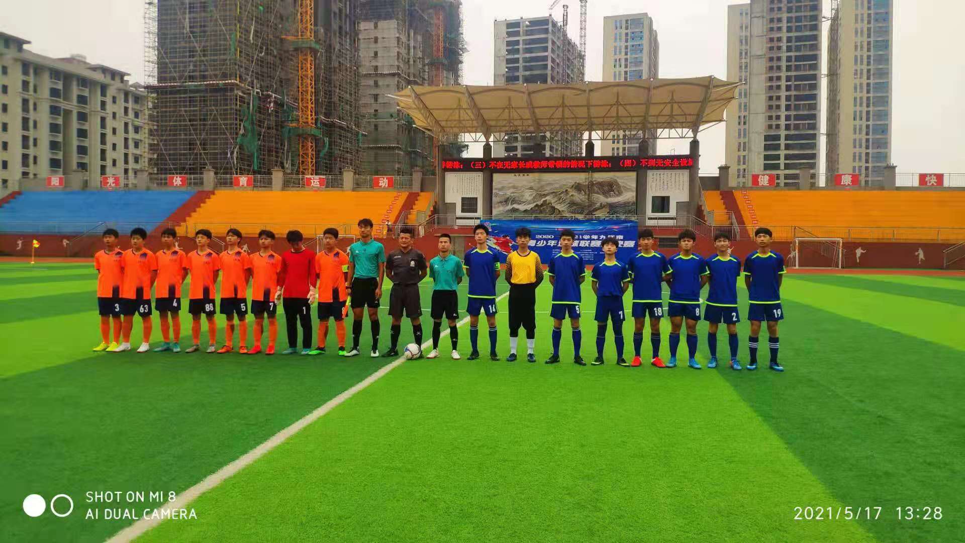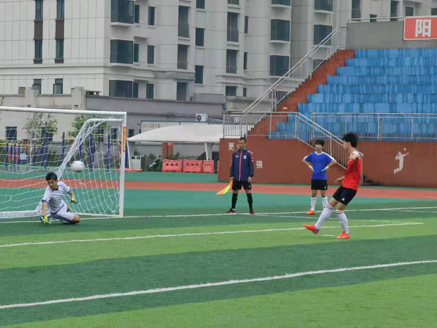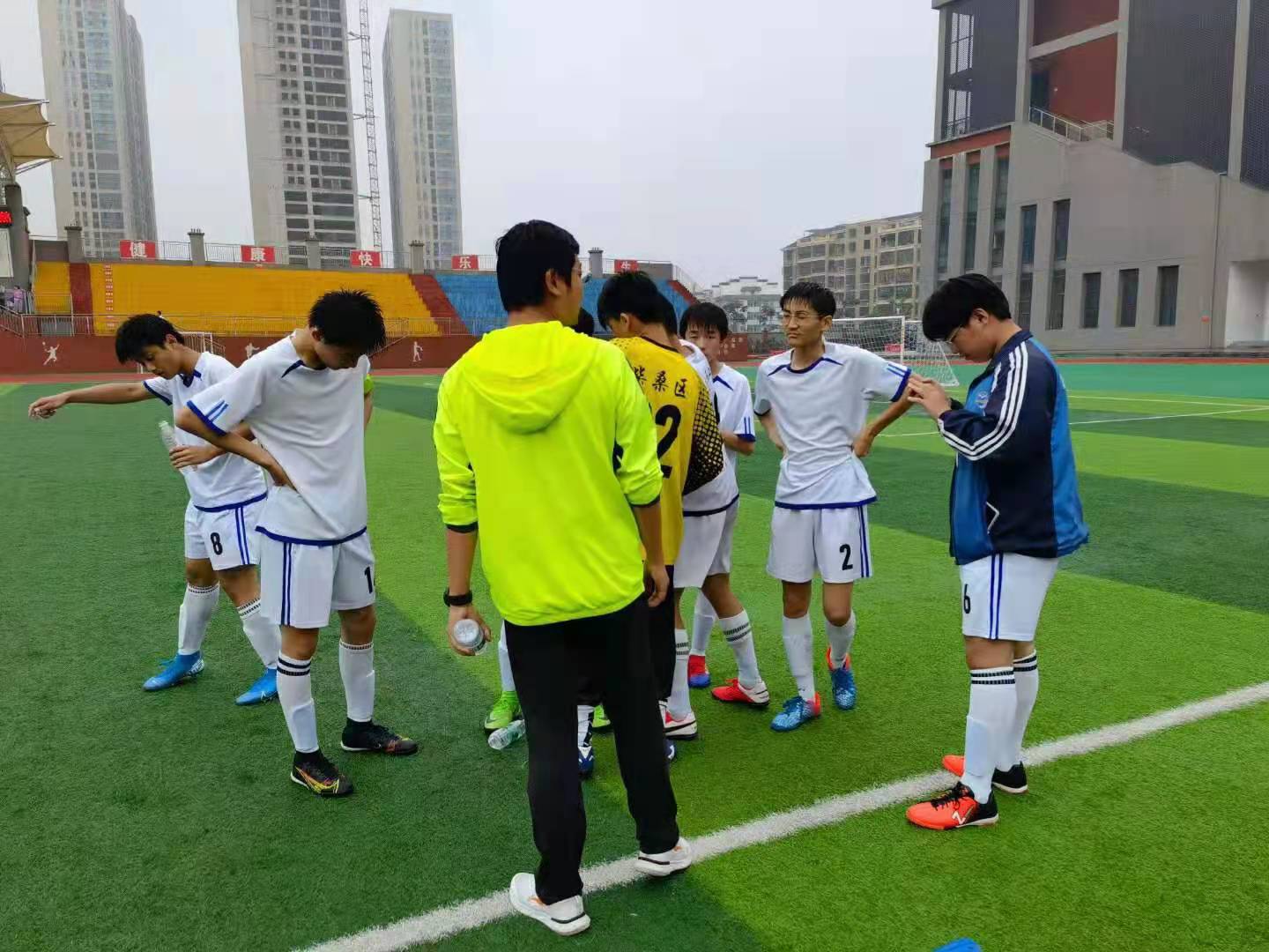 5月19,在总决赛三四名比赛,柴桑区二中对手是足球传统学校九江三中,我校队员奋勇拼搏,在大雨中与对手鏖战成1比1平。