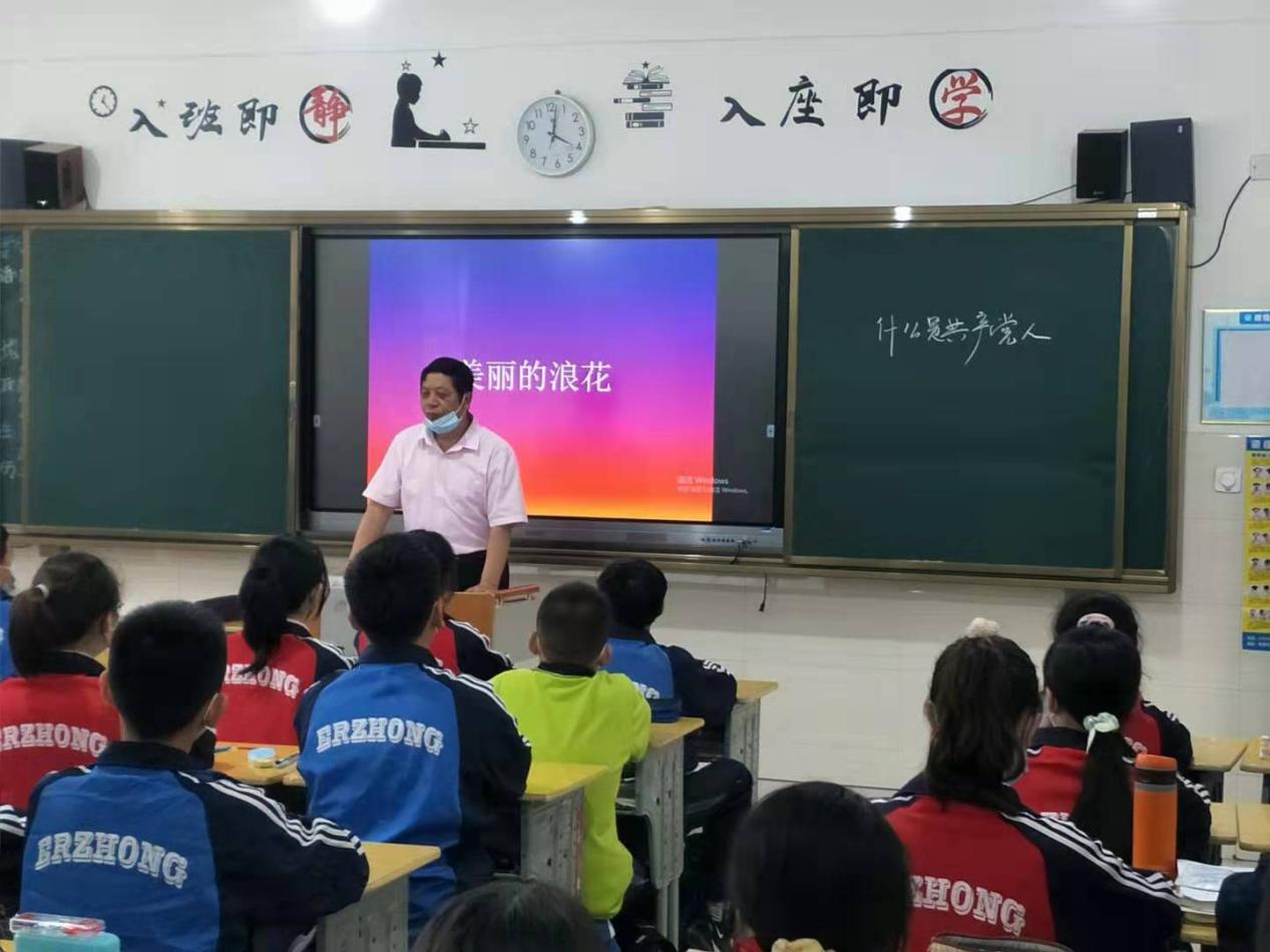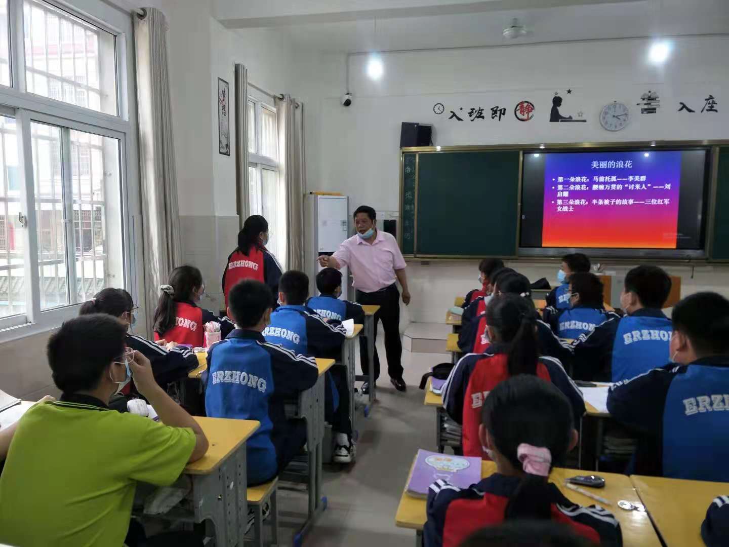 5月21日下午,区关工委报告团、区老干部报告团成员吴道红走进柴桑区二中初一(5)班,给学生讲述“共产党人的故事”。