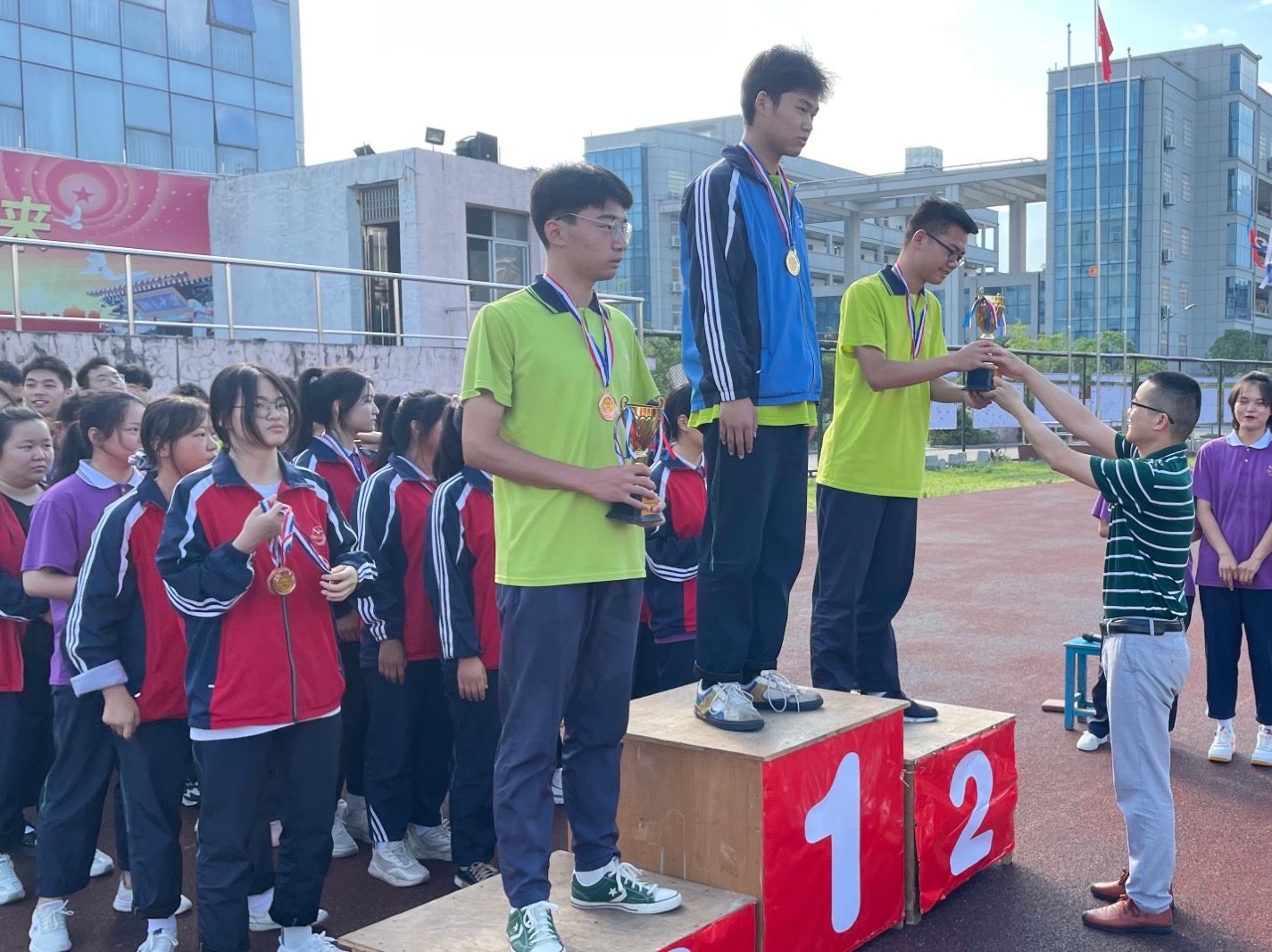 给获胜班级颁发奖杯