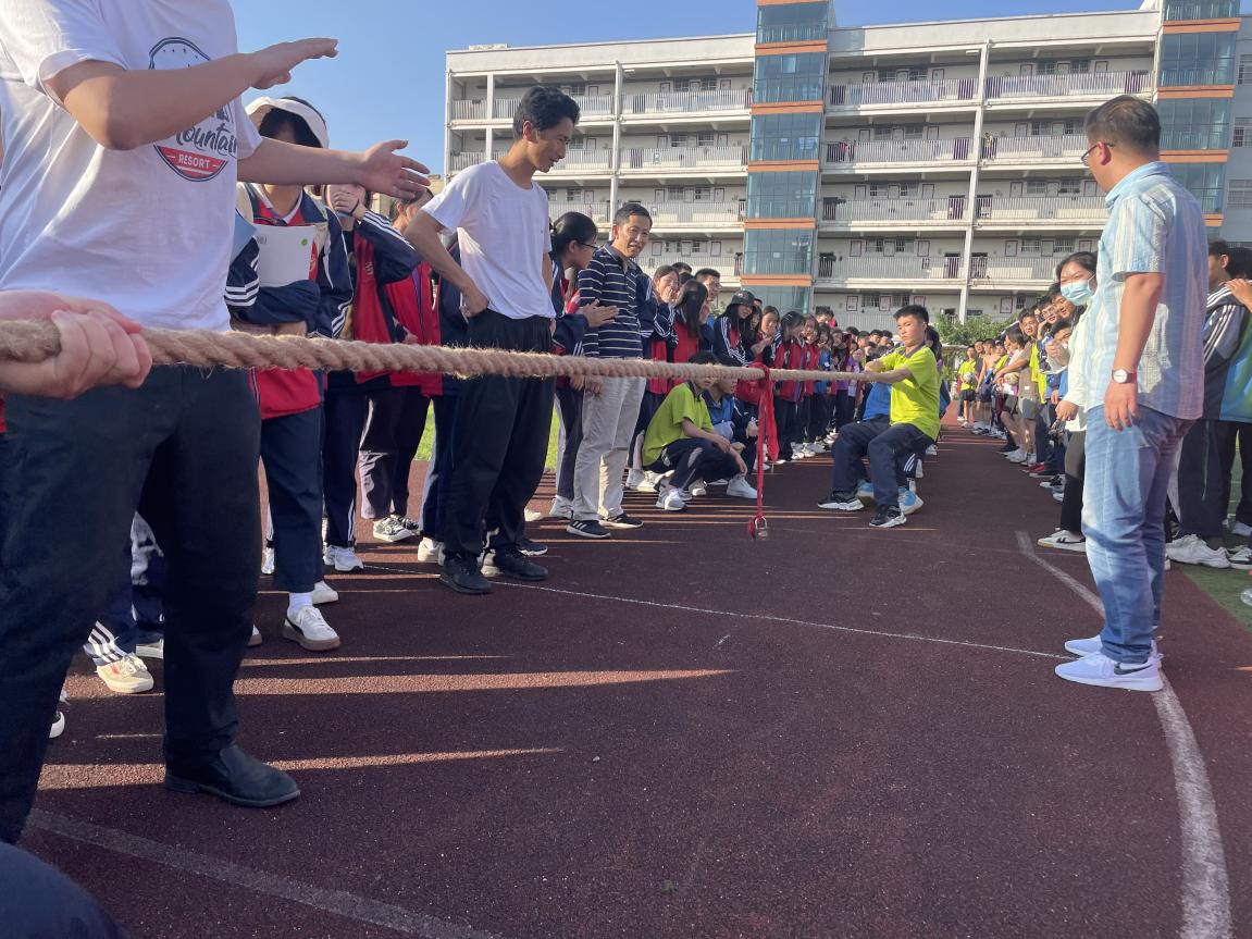 在旁助威的班主任、同学们同样给比赛增添了一抹亮色。每一声呐喊都带来一股力量,尤其是在胜负难分的时刻,大家毫不退却,咬紧牙关,坚持到底,号子声、呐喊声,此起彼伏,振奋人心。