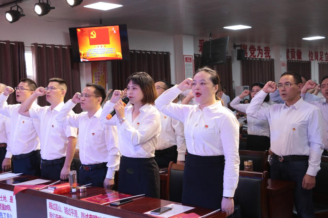 校党总支副书记熊婷领誓,全体党员重温入党誓词