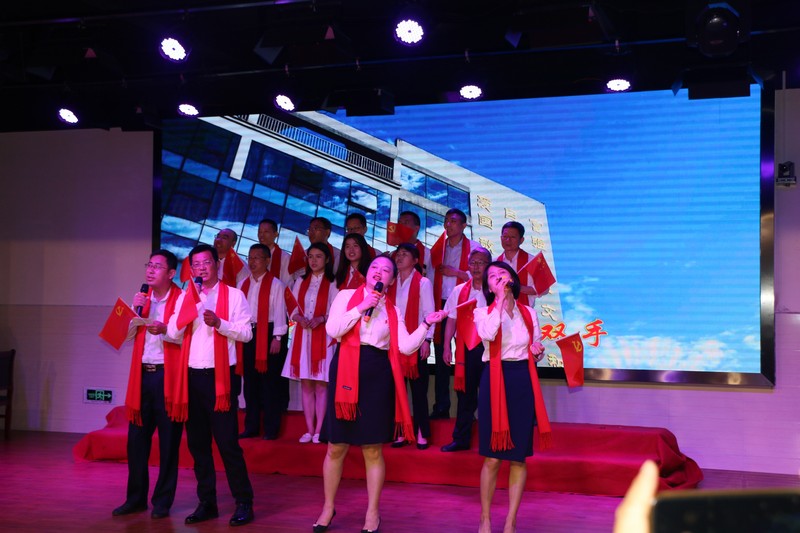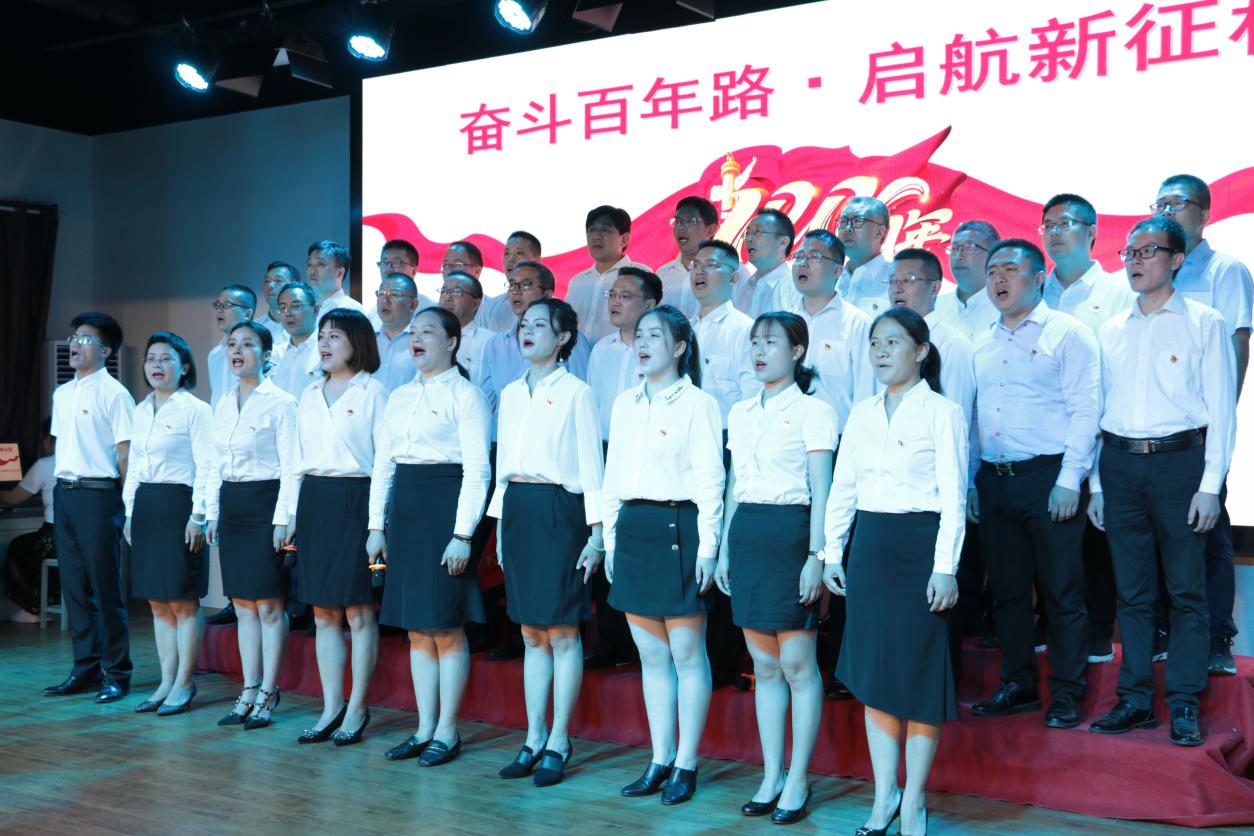 文艺汇演最后,全场起立,共同高唱《没有共产党就没有新中国》,将整场演出推向了高潮。大家用深情豪迈的歌声,唱出心中坚定信念,向党深情告白,为建党百年献礼祝福。