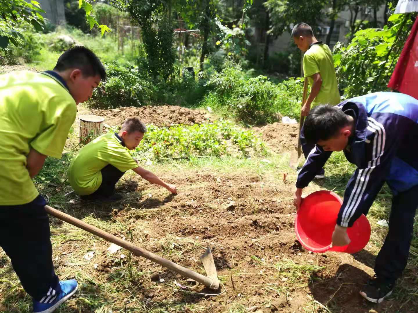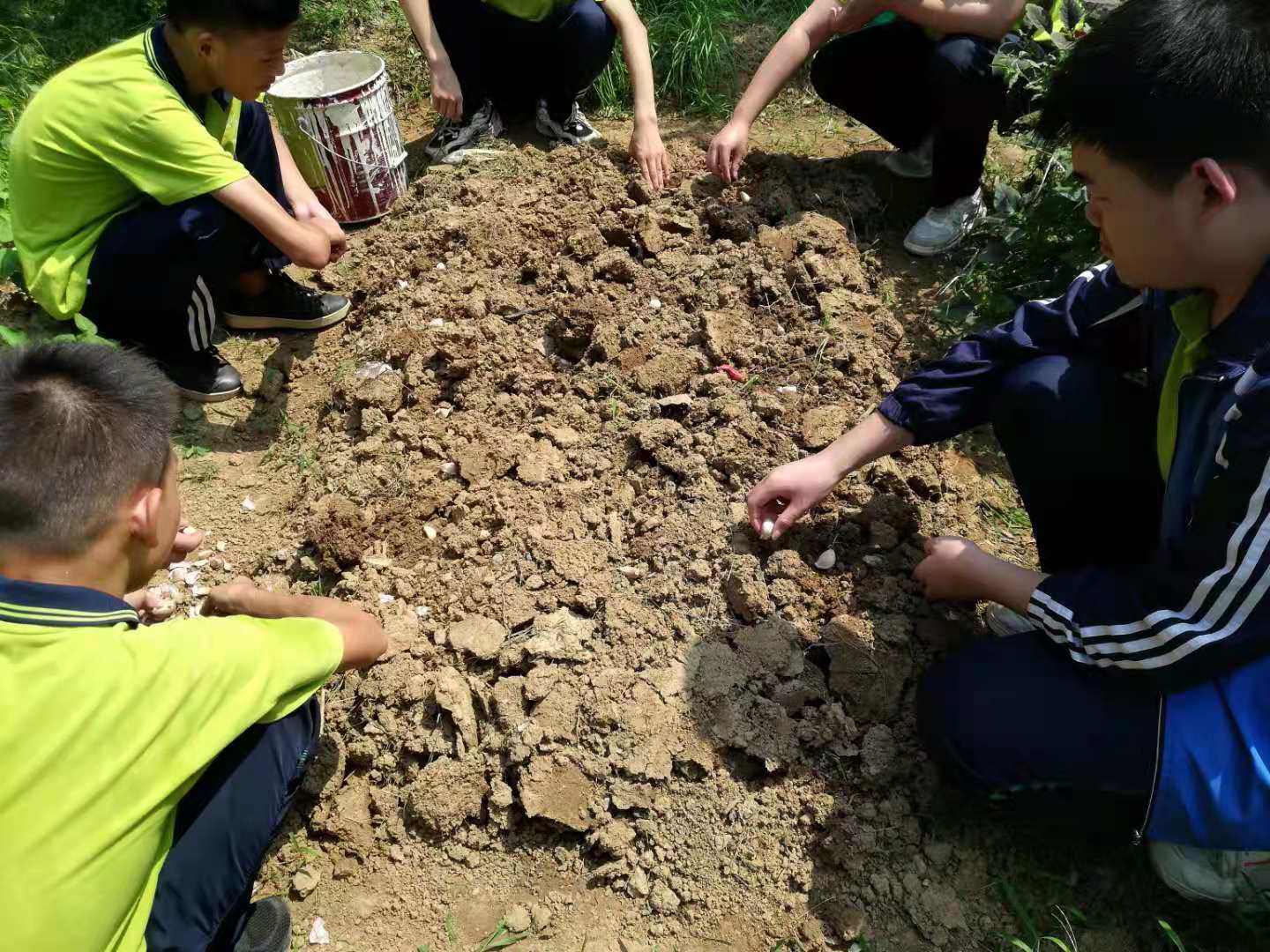 同学们在带队老师的指导下,普及了大蒜知识,找到了一块土壤疏松、排水良好、有机质丰富的地块。同学们认真仔细,分工合作,除草松土,播种浇水,覆土护种。顶着烈日,大家忙得不亦乐乎,尽情享受着劳动的欢乐。