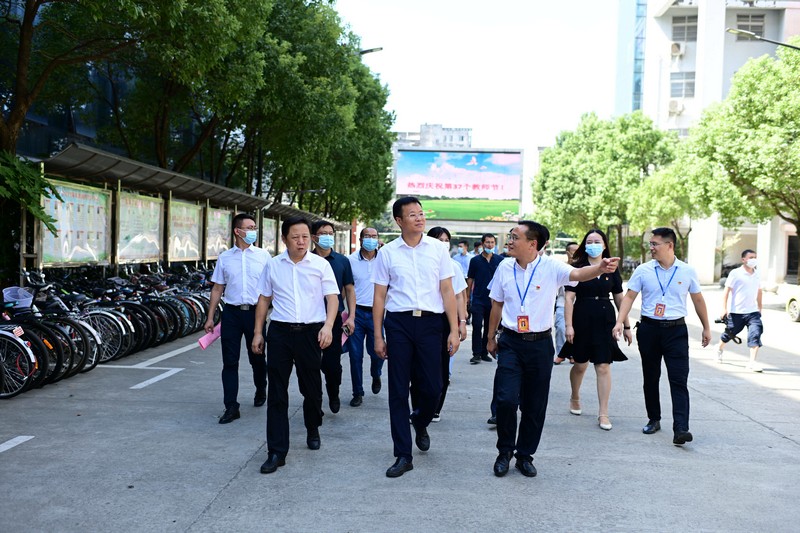 盛炜实地查看了校园面貌,重点了解了学校近年来发展状况及中高考成绩,柴桑区二中校长朱巨军等校级班子陪同。