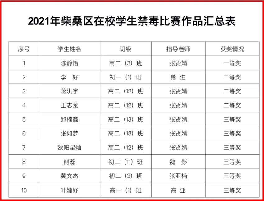 为深刻巩固青少年毒品预防教育“6.27”工程成果,进一步增强在校学生识毒、防毒、拒毒意识和能力,柴桑区二中开展以“健康人生,绿色无毒”为主题的禁毒作品征集活动。