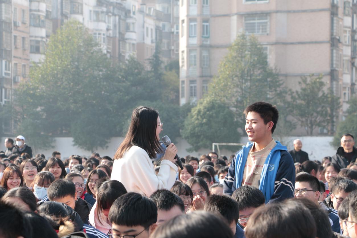 初三、高三年级部分班级学生代表班同学从不同方面表达了自己对未来的憧憬,表达了对学校的热爱,对老师、父母的感恩以及决胜高考的信心,他们坚定的喊出自己要考的分数和理想的大学,全体同学热情鼓掌加油。