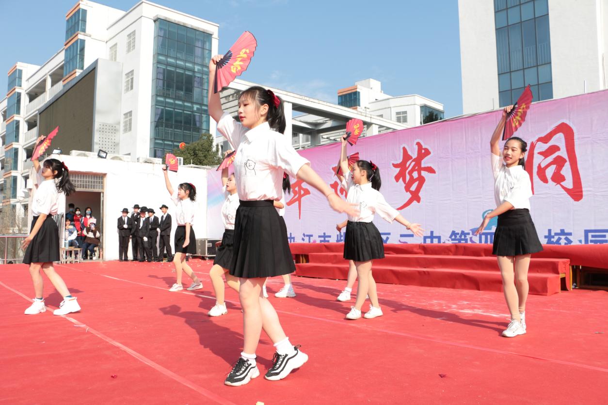 2021年12月31日,艳阳高照、如沐春晖,2021年最后一个工作日,在校田径运动场,柴桑区二中第四届校园文化艺术节文艺汇演如期举行,全校5000余名师生观看演出。