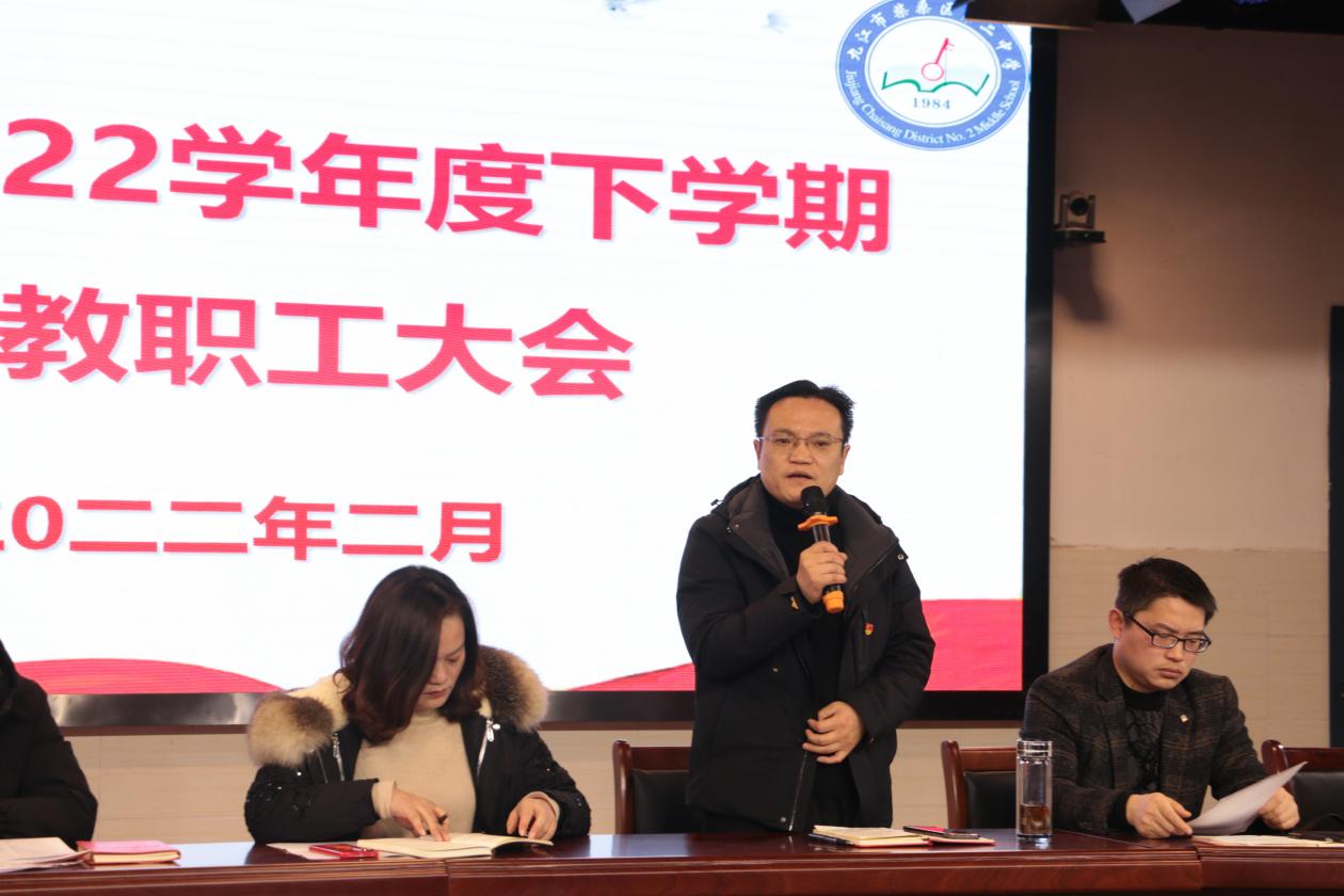 新春已到,万象更新。2月16日上午9点,柴桑区二中举行新学期全体教职工大会。会议由校党总支副书记熊婷主持,各分管校领导分别对新学期学校各项工作进行部署动员,校长朱巨军对新学期学校全面工作作讲话。