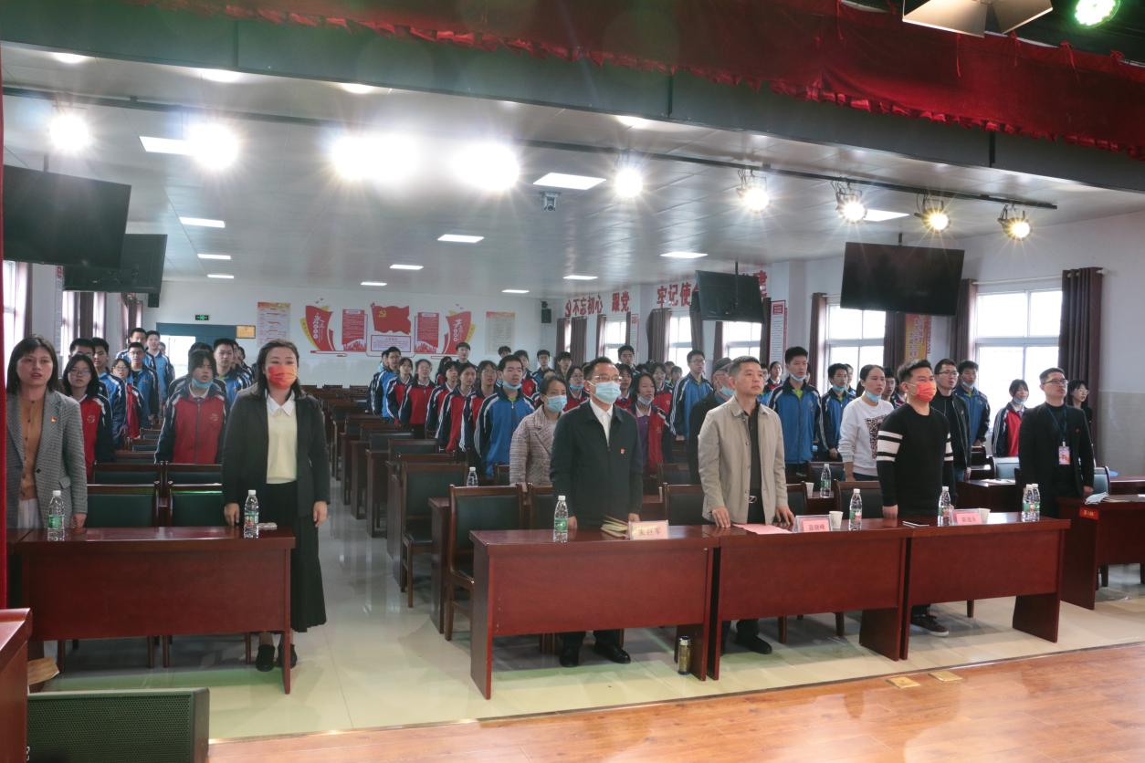 “我志愿加入中国共产主义青年团,坚决拥护中国共产党的领导,遵守团的章程……”入团仪式上,在校团委书记桂红红的带领下,全体新团员面向鲜红的团旗,用青春激昂的声音庄严宣誓,誓言如山,铿锵有力。