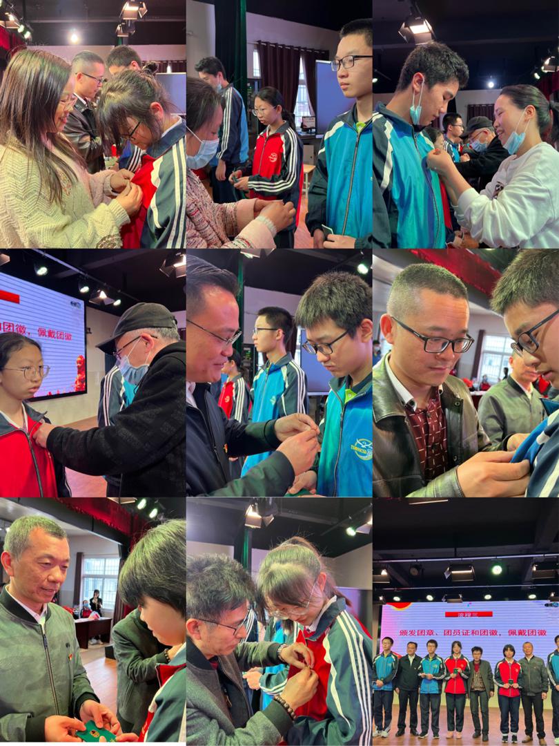 活动第二项:新团员入团仪式隆重的入团仪式,是增强青年学生的荣誉感和使命感的重要环节,本次活动邀请了部分新团员家长代表来到了现场,由家长庄重地为孩子佩戴上团徽,和孩子一起见证这光荣而又神圣的一刻。随后,由老团员郑重地向新团员颁发团章、团员证和团徽。