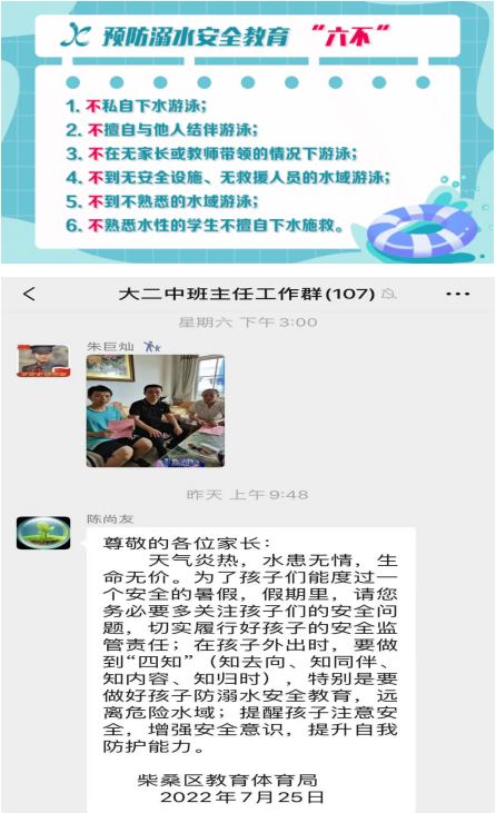 为进一步加强学校防溺水安全教育工作,增强学生安全意识和家长监护责任,近日,柴桑区二中集中开展暑期“防溺水”家访活动。