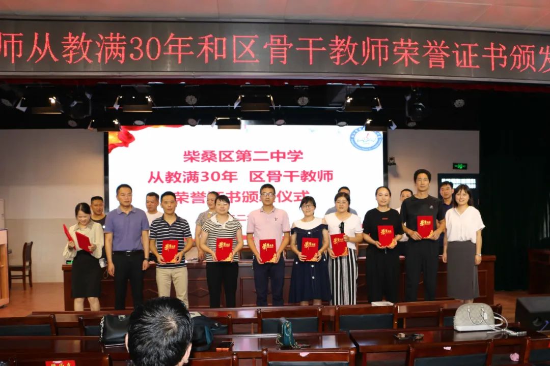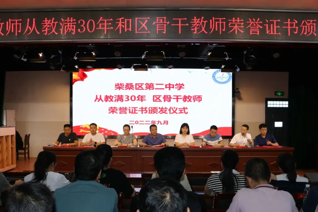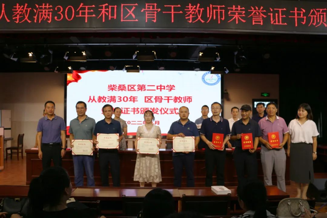 9月9日下午,在第38个教师节来临之际,学校在会议中心举行“迎接党的二十大,培根铸魂育新人”2022从教满三十年和区骨干教师荣誉证书颁发仪式 。全体校领导出席,副校长熊进主持会议。