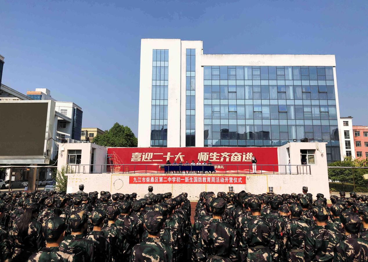 为提高国防意识,鼓励青少年的爱国之心和报国之志。9月19日下午,柴桑区二中2022级初一新生国防教育开营仪式在田径运动场举行。校党委书记雷新江、校长熊婷及校领导班子出席,朱睿琦老师主持仪式。