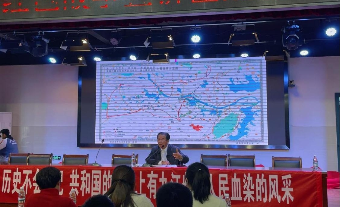 熊家海老师围绕“国际悲歌同声唱 初心如日照征程”主题,以柴桑区近代革命斗争史为主线,通过丰富翔实的数据资料,介绍了在柴桑区反帝反封建斗争历史上有影响力的三个历史事件,并动情地讲述了在斗争中涌现出的革命烈士蒋群、叶瑞堂、桂敏的感人事迹。