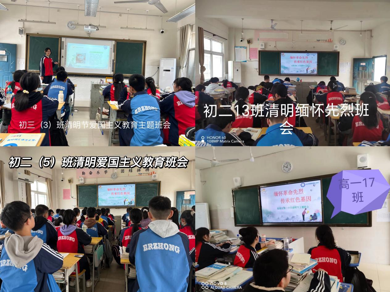 在清明节爱国主义教育主题班会上,各班从“清明节的由来”“清明节的习俗”“缅怀革命英雄”三个模块,对青年学生进行红色教育和感恩教育,在传承革命传统文化的同时,感恩先烈们的付出,让二中学子铭记历史、继承先烈遗志,在生活实践中锻炼意志、培育品德,立志成为有担当的新时代青年。