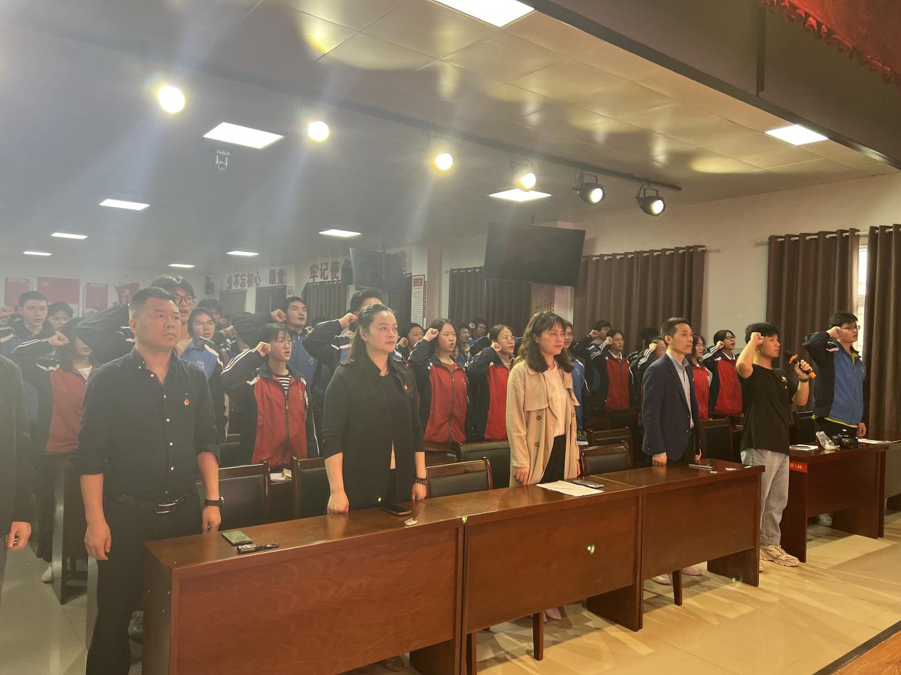 “我志愿加入中国共产主义青年团,坚决拥护中国共产党的领导,遵守团的章程……”入团仪式上,在校团委马祖臣老师的带领下,全体新团员面向鲜红的团旗,用青春激昂的声音庄严宣誓,誓言如山,铿锵有力。