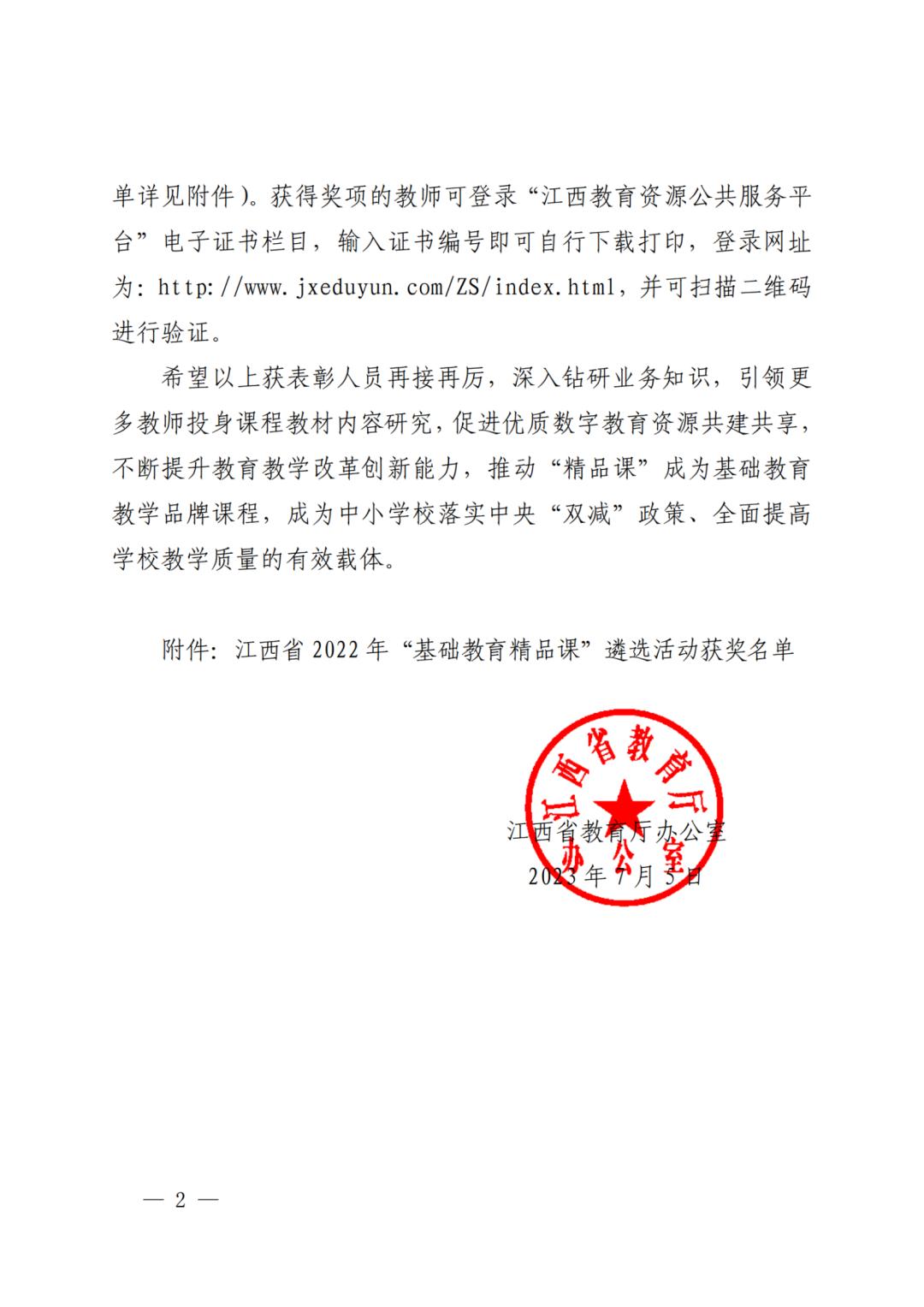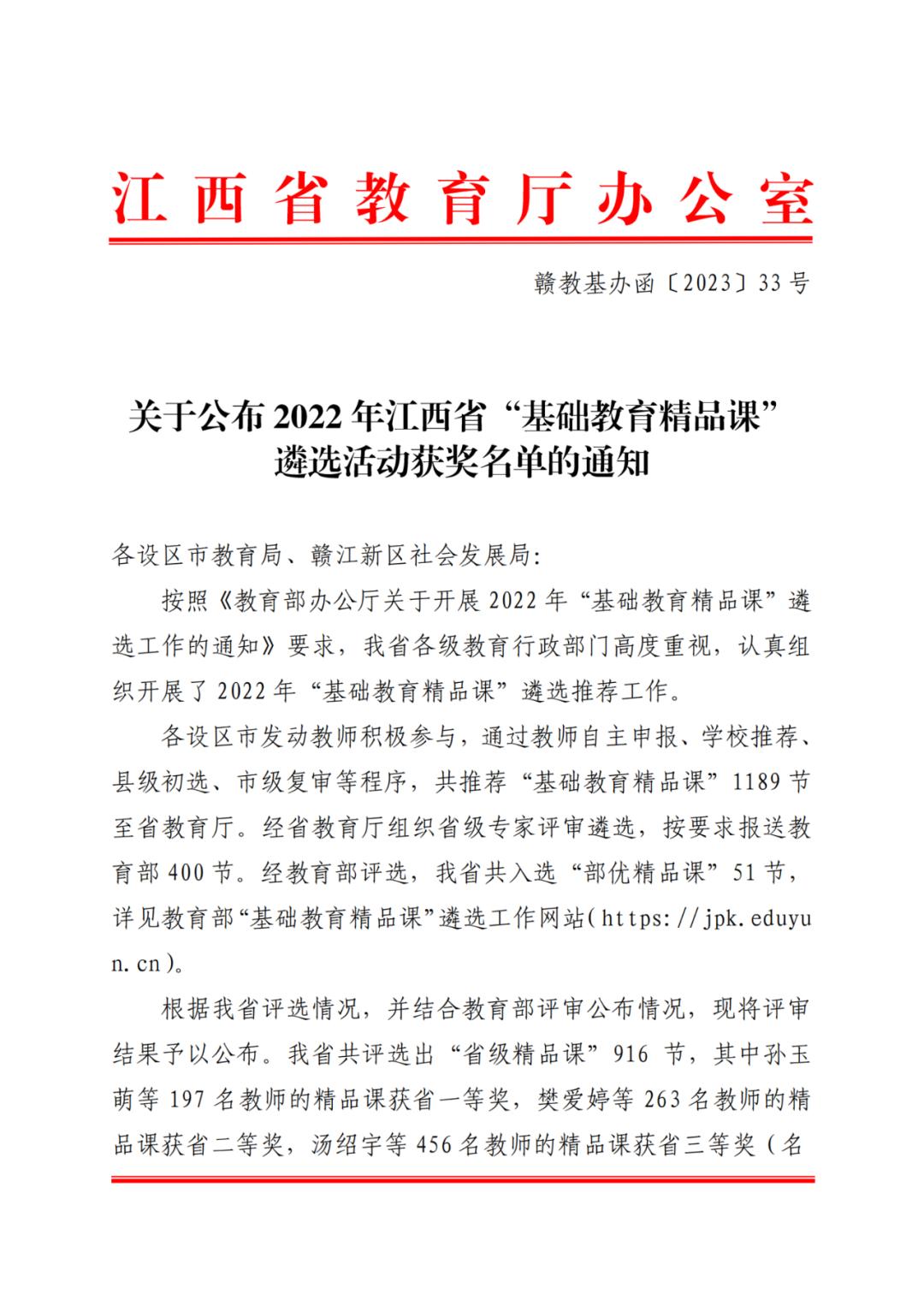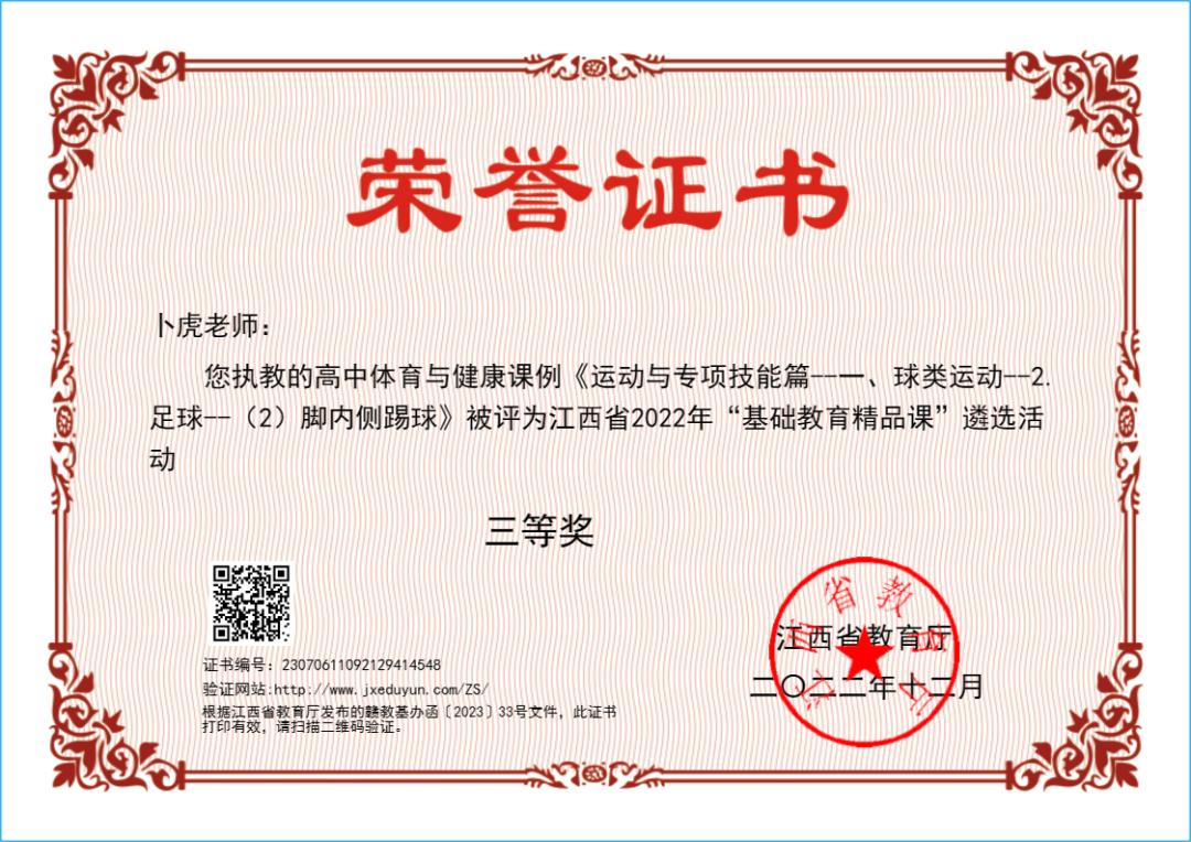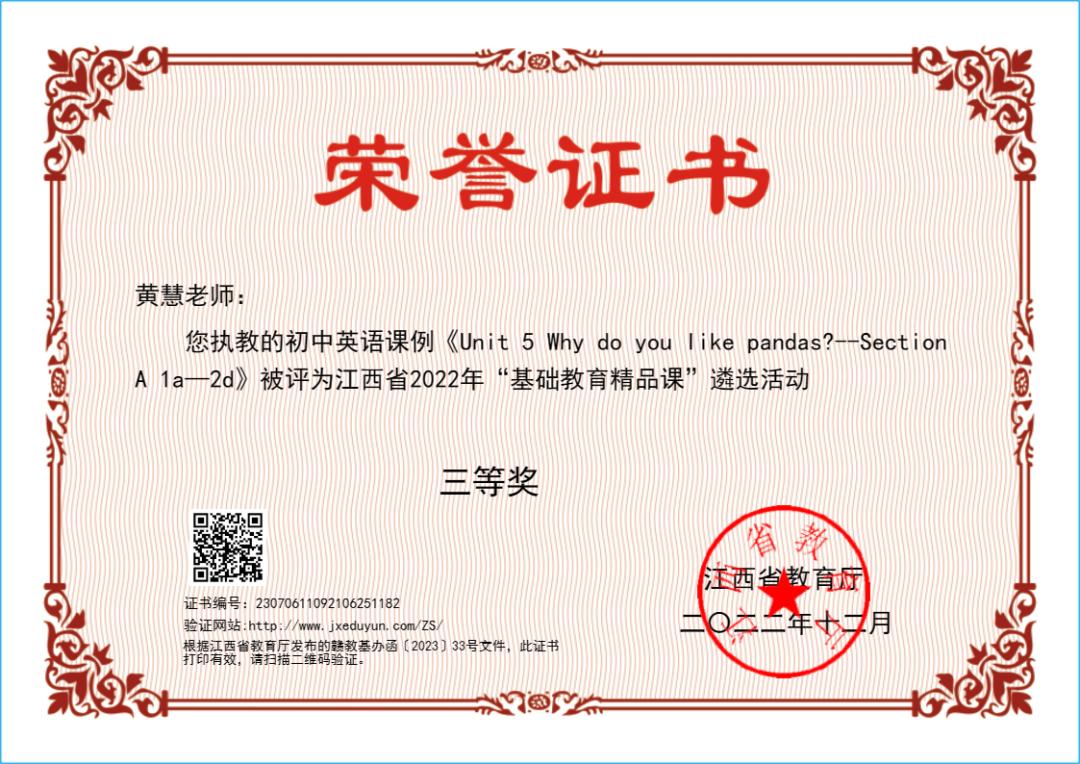 经过层层选拔和评比,我校黄慧老师、卜虎老师均获得2022年省级三等奖。其中黄慧老师还在2021年“基础教育精品课”遴选中荣获江西省二等奖。