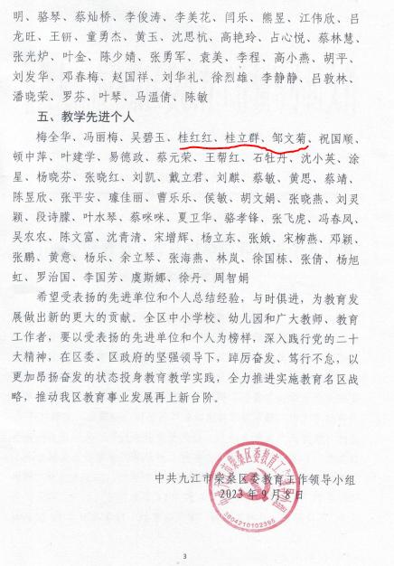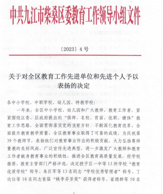 中共九江市柴桑区委教育领导小组【2023】4号文件