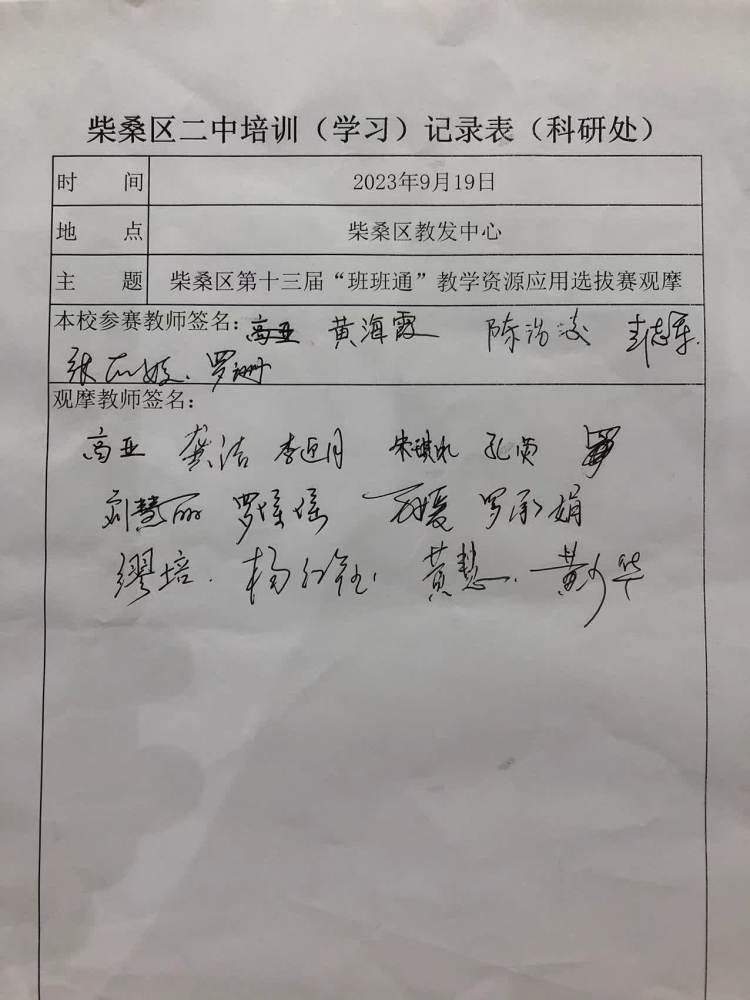9月19日,经过层层打磨,黄海霞、陈浩凌、罗珊、张丽媛和彭志军5位教师代表我校参加了2023年柴桑区第十三届“班班通”教学资源应用选拔赛。除参赛教师外,我校13名教师自发主动参与选拔赛观摩。