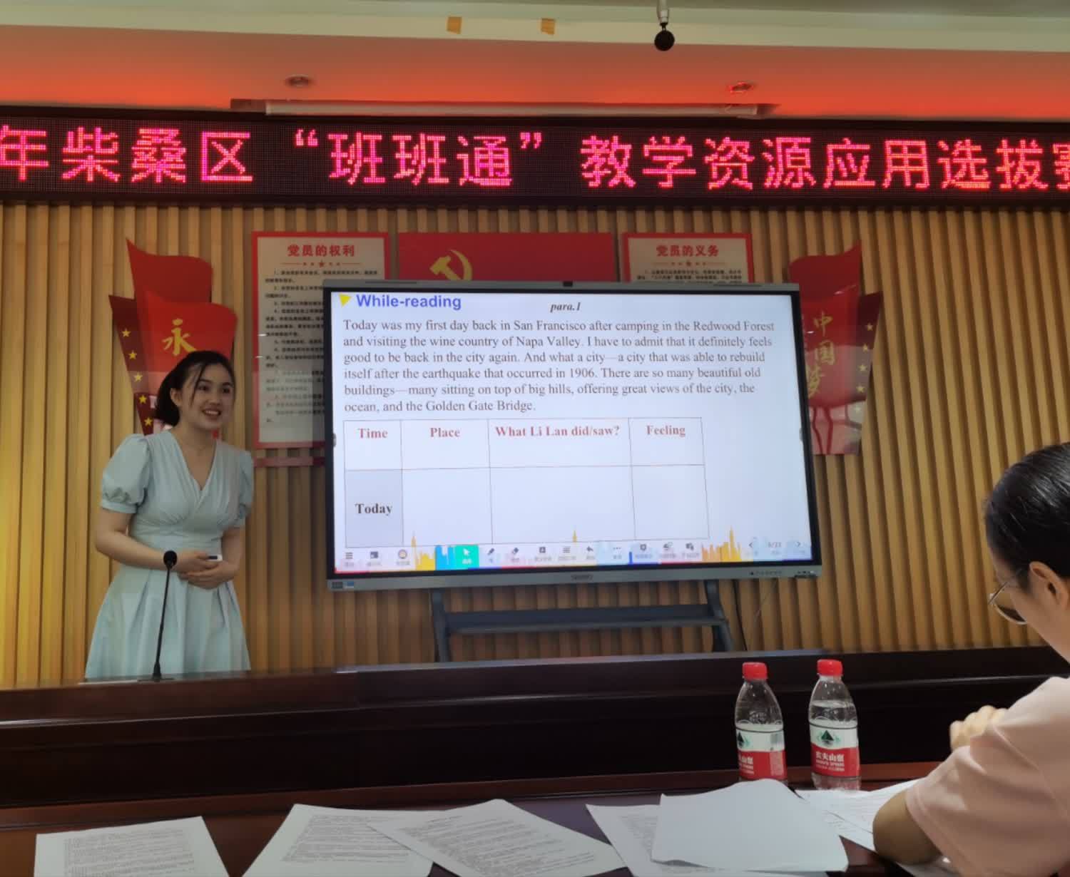 她说 从决定参加比赛,网上搜集各种材料,熬夜做课件,试讲磨课,到今天有幸站在台上跟其他老师一起赛课,其中的艰辛与付出是有目共睹的,但是收获也是匪浅的,不仅加强了制作ppt的能力,也锻炼了自己的上课技能,同时也从其他的老师身上学到了一些教学技能。