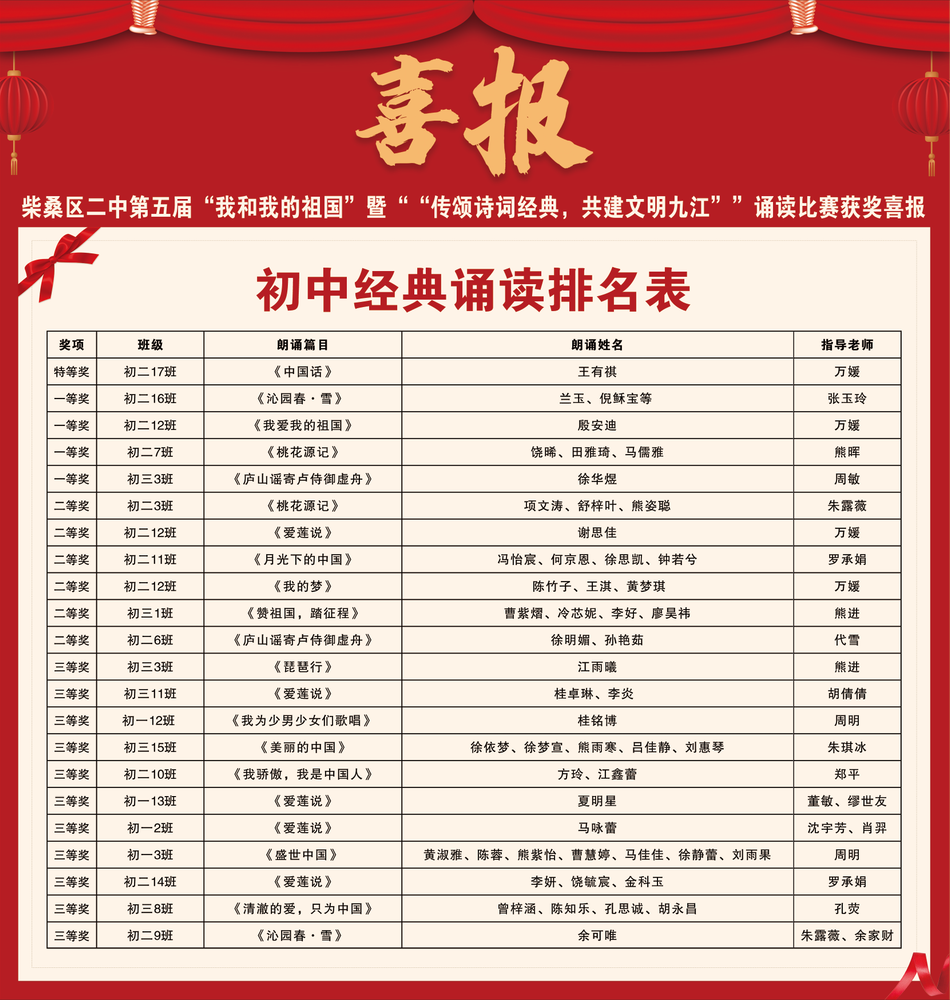 柴桑区二中举办古代经典诗词传唱诵读比赛