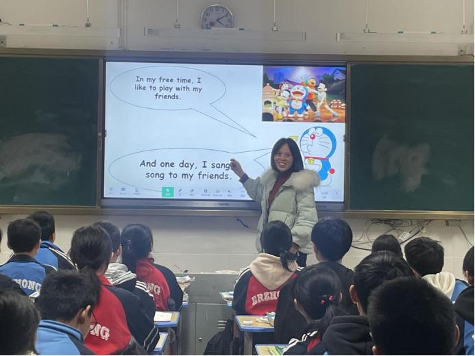师德之魂在于爱,但只有爱是不够的,要给学生一滴水,教师就必须拥有整片海洋。苏霍姆林斯基说过:“教师要给学生一杯水,自己要有一桶水,更要成为长流水。”我经常将这句名言铭记于心。工作以来,我不断学习,潜心钻研新课标和教材,丝毫不敢松懈,不断地摸索适合自己学生的教学方法,在教学上充分发挥学生的主体作用,让学生做课堂的主人。 我营造轻松活泼的课堂氛围,经常利用希沃白板里的课堂活动给学生进行各类PK赛,展现课堂的无穷魅力,最大程度地让学生爱上英语课堂。
