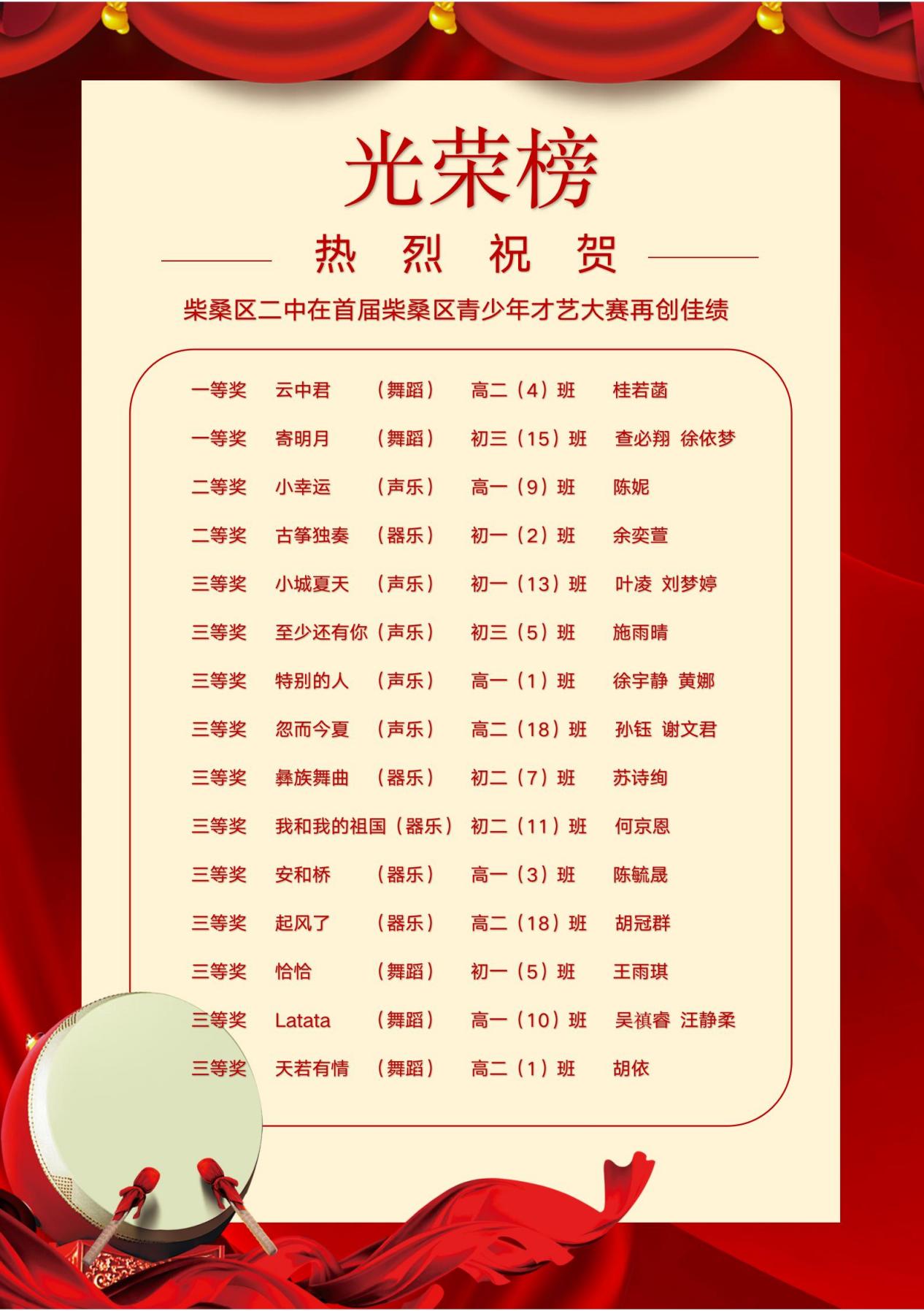——柴桑区二中在首届青少年才艺大赛中喜获佳绩